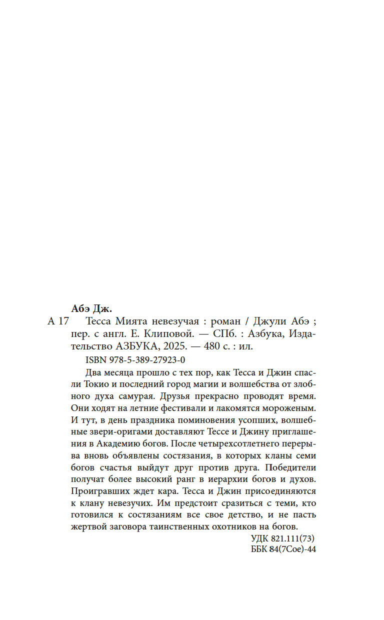 Два месяца прошло с тех пор, как Тесса и Джин спасли Токио и последний город магии и волшебства от злобного духа самурая. Друзья прекрасно проводят время. Они ходят на летние фестивали и лакомятся мороженым. И тут, в день праздника поминовения усопших, волшебные звери-оригами доставляют Тессе и Джину приглашения в Академию богов. После четырехсотлетнего перерыва вновь объявлены состязания, в которых кланы семи богов счастья выйдут друг против друга. Победители получат более высокий ранг в иерархии богов и духов. Проигравших ждет кара. Тесса и Джин присоединяются к клану невезучих. Им предстоит сразиться с теми, кто готовился к состязаниям все свое детство, и не пасть жертвой заговора таинственных охотников на богов.