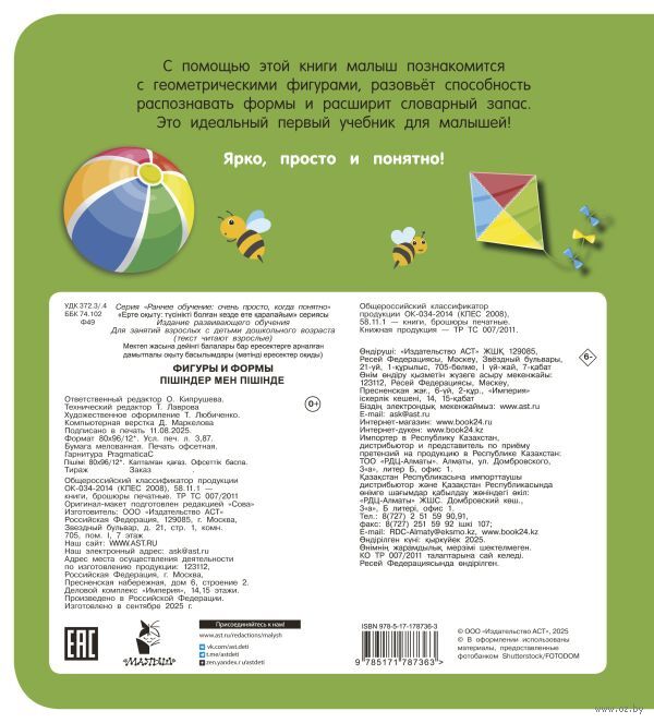Яркая развивающая книга для самых маленьких "Фигуры и формы" легко и весело познакомит ребёнка с базовыми геометрическими фигурами, а заодно поможет выучить первые слова. В книжке малыши увидят знакомые предметы в форме изученных фигур. Красочные иллюстрации, простые образы и чёткая визуальная связь между формой и предметом способствуют развитию внимания, мышления и речи. А качественная мелованная бумага и закруглённые углы страниц делают книгу прочной и безопасной – она не порвётся и не помнётся, а ребёнок не порежется!