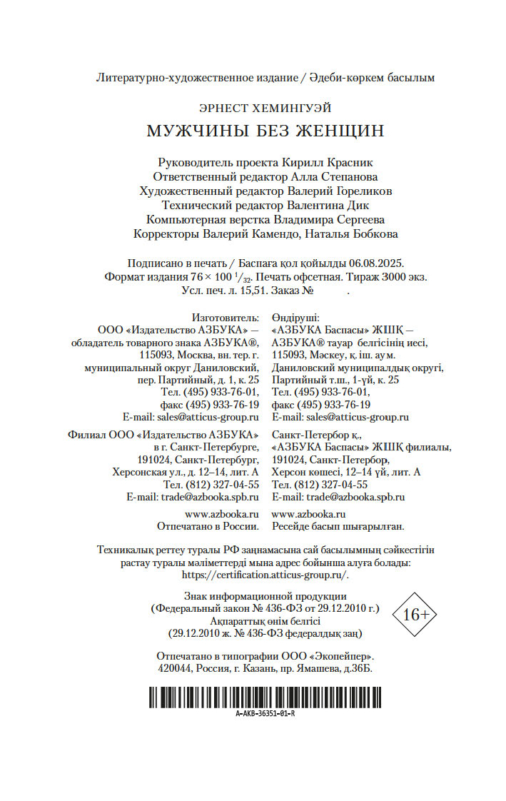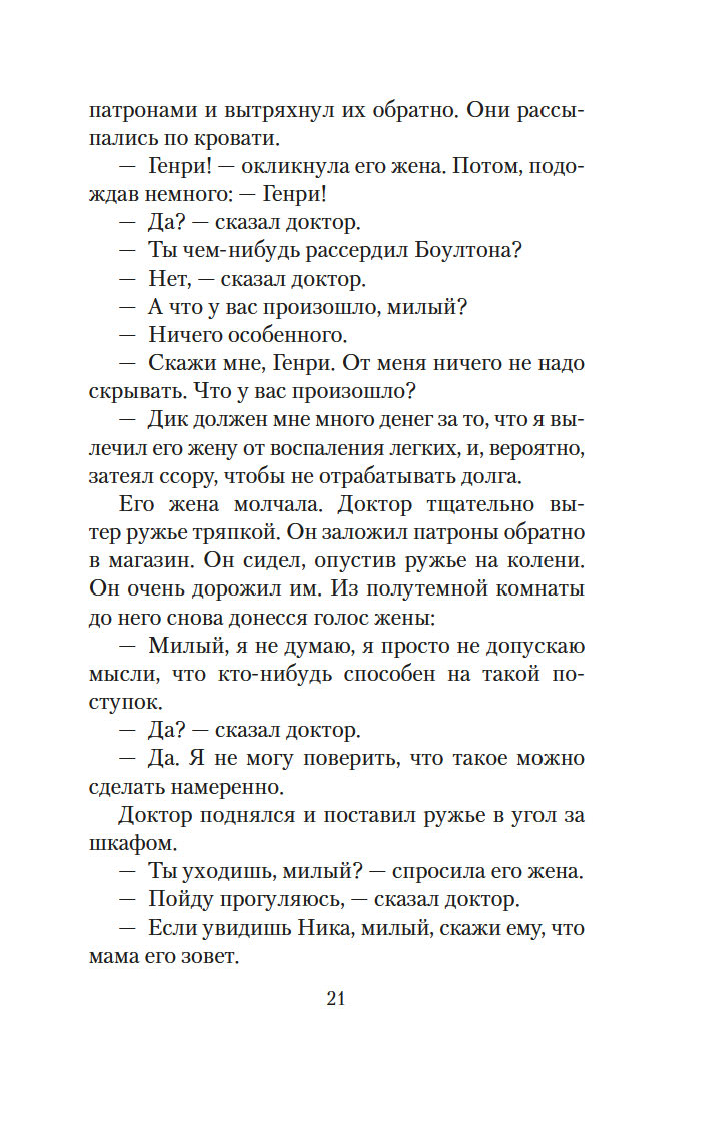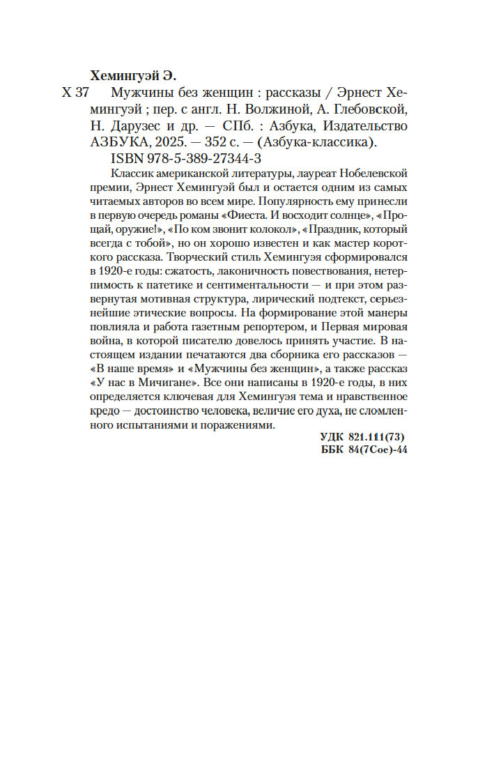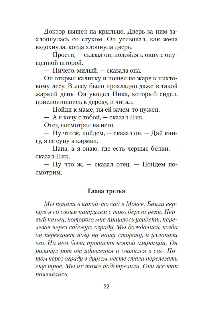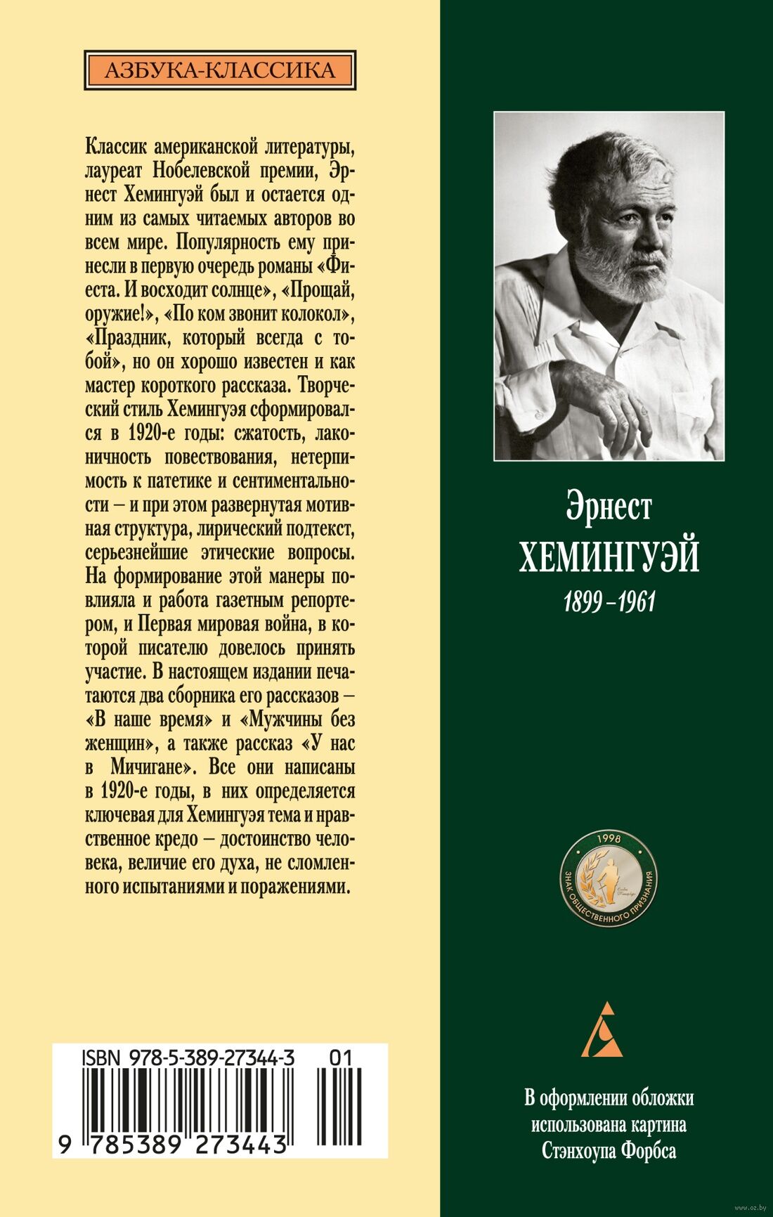 В настоящем издании печатаются два сборника его рассказов – "В наше время" и "Мужчины без женщин", а также рассказ "У нас в Мичигане". Все они написаны в 1920-е годы, в них определяется ключевая для Хемингуэя тема и нравственное кредо – достоинство человека, величие его духа, не сломленного испытаниями и поражениями.