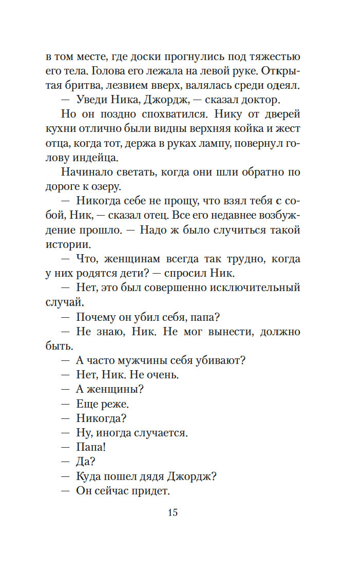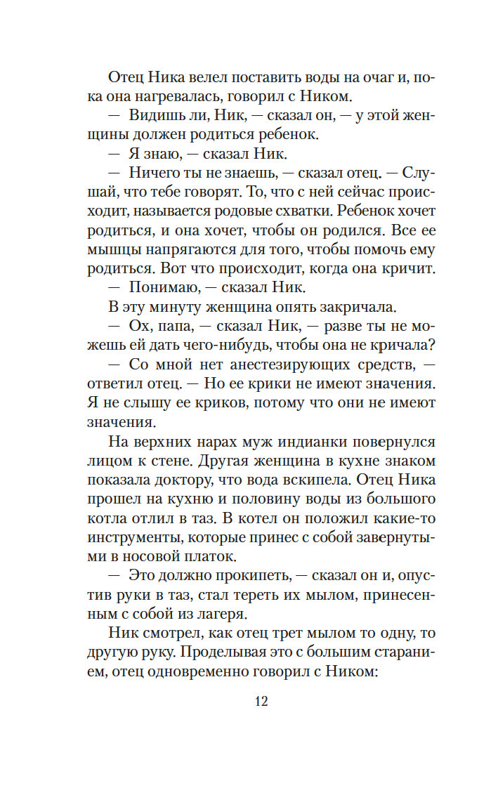 Классик американской литературы, лауреат Нобелевской премии, Эрнест Хемингуэй был и остается одним из самых читаемых авторов во всем мире. Популярность ему принесли в первую очередь романы "Фиеста. И восходит солнце", "Прощай, оружие!", "По ком звонит колокол", "Праздник, который всегда с тобой", но он хорошо известен и как мастер короткого рассказа. Творческий стиль Хемингуэя сформировался в 1920-е годы: сжатость, лаконичность повествования, нетерпимость к патетике и сентиментальности – и при этом развернутая мотивная структура, лирический подтекст, серьезнейшие этические вопросы. На формирование этой манеры повлияла и работа газетным репортером, и Первая мировая война, в которой писателю довелось принять участие.
