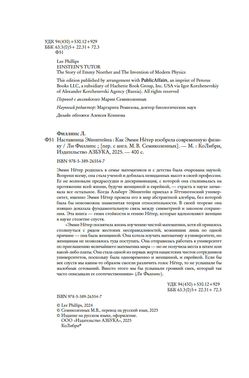 | Название в оригинале | The Woman Who Tutored Einstein: How Emmy Noether Invented Modern Physics |