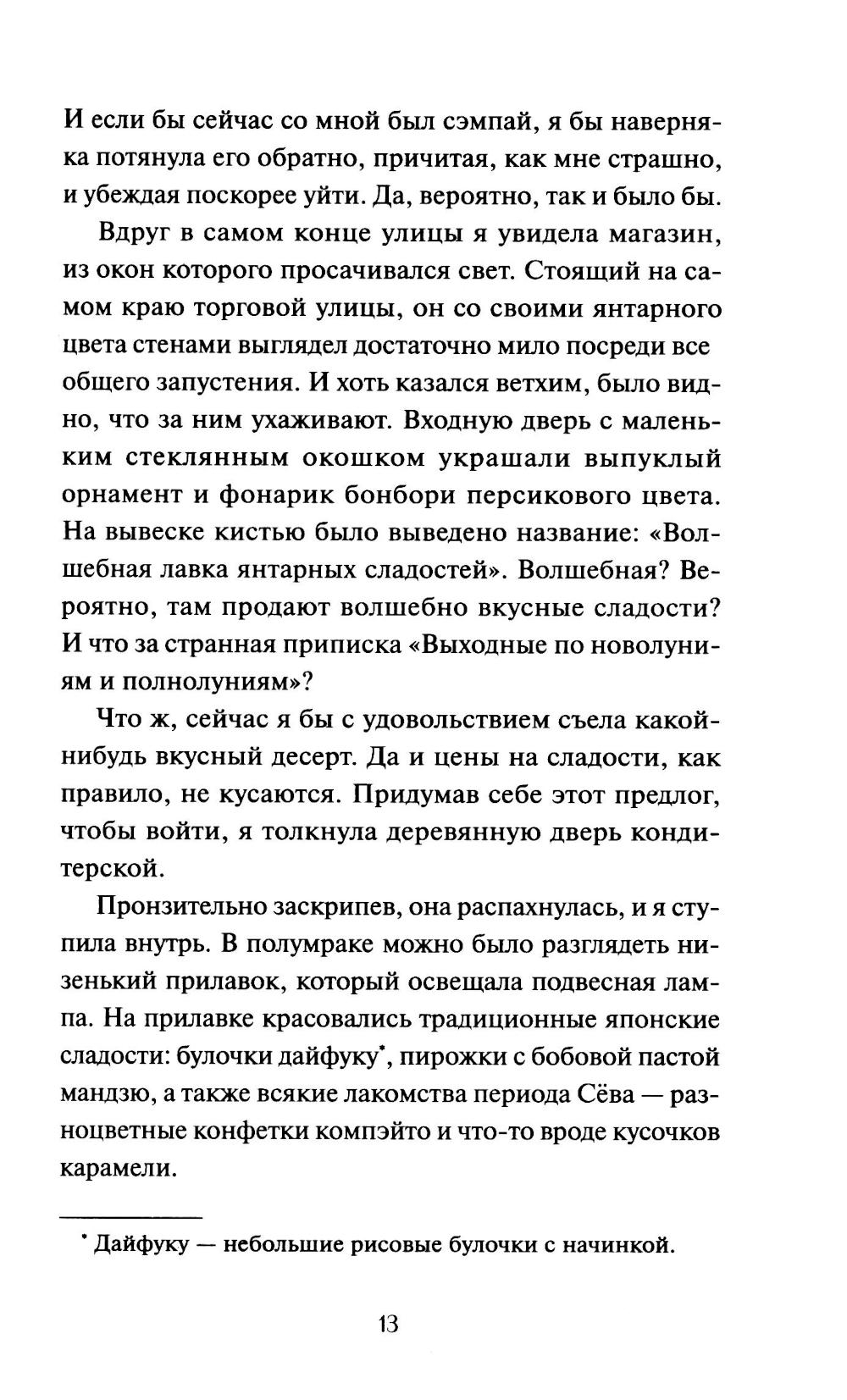 На окраине Сумеречной аллеи, которая начинается за укрытым деревьями святилищем, стоит особенная лавка. Полки ее ломятся от вагаси – традиционных японских сладостей, а двери открыты для всех, кому требуется утешение: будь то влюбленная старшеклассница, застенчивый риелтор или растерянная молодая мама.