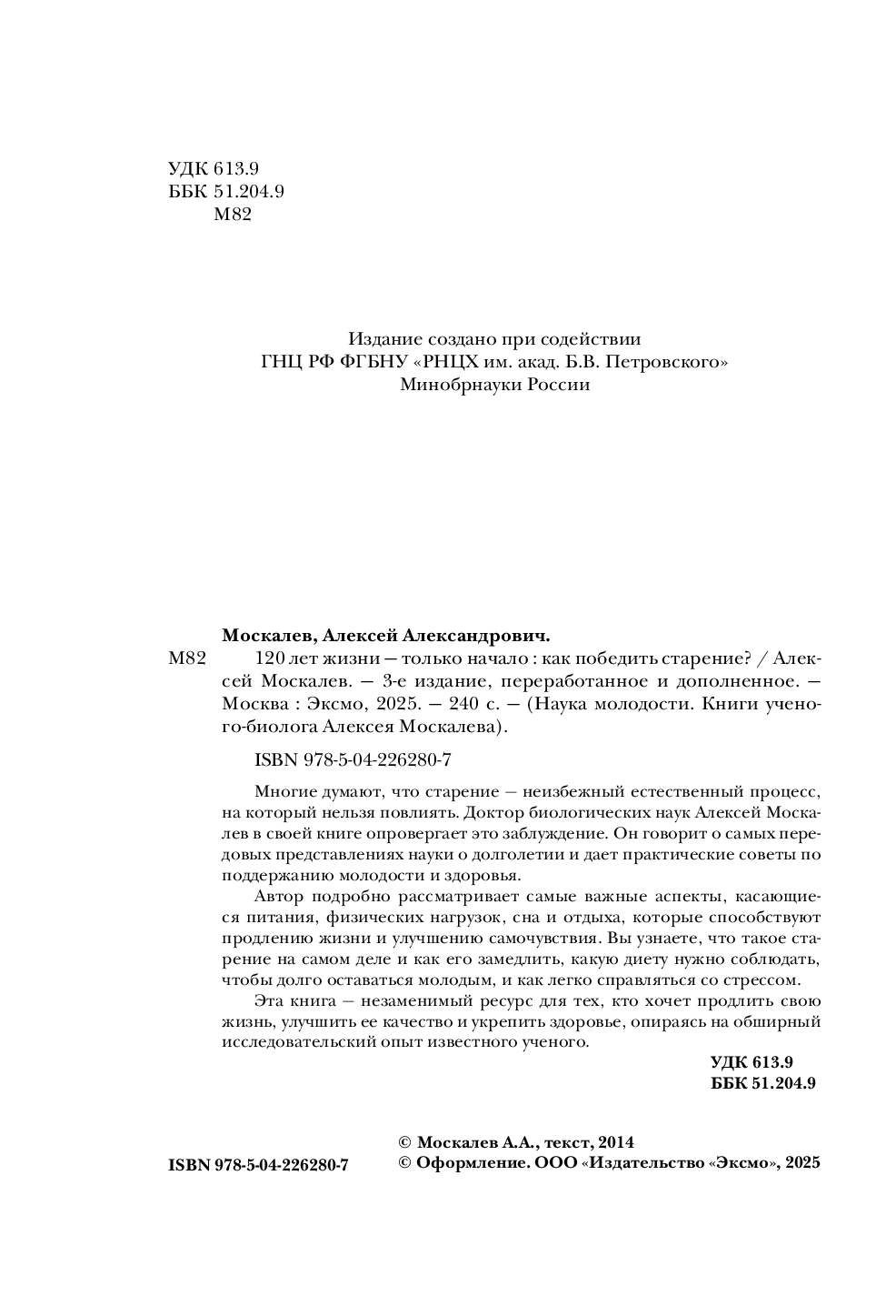 | Серия | Наука молодости. Книги ученого-биолога Алексея Москалева |