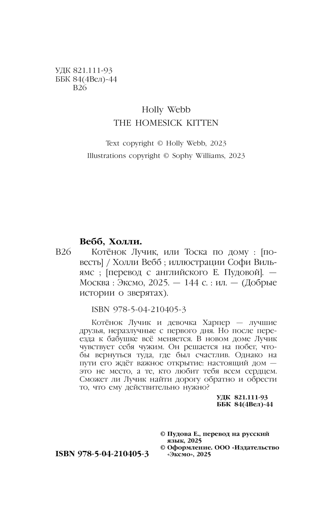 | Название в оригинале | The Homesick Kitten by Holly Webb |