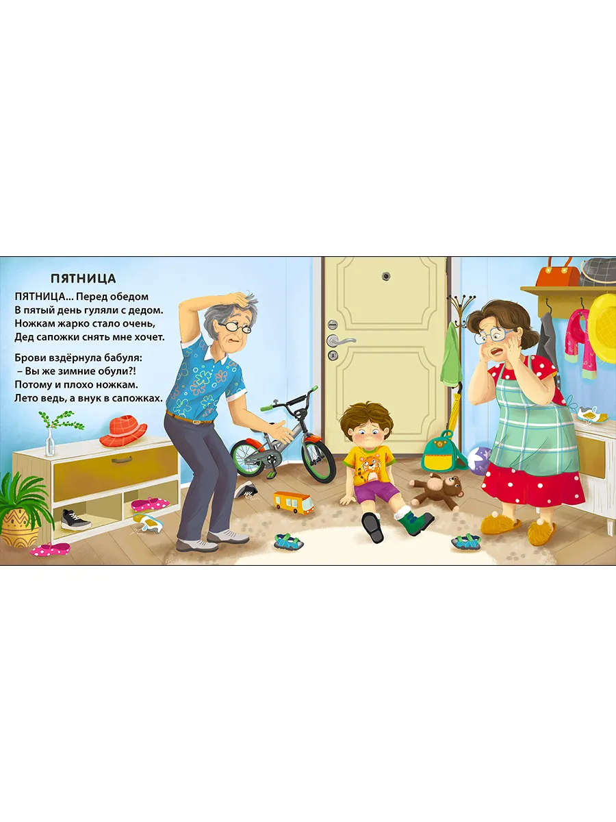 Книжка-картонка "Дни недели" в стихах Евгения Сосновского познакомит малыша с днями недели и разными событиями, которые происходили с героями в эти дни. Благодаря книжке ребенок быстро запомнит названия всех дней недели.
