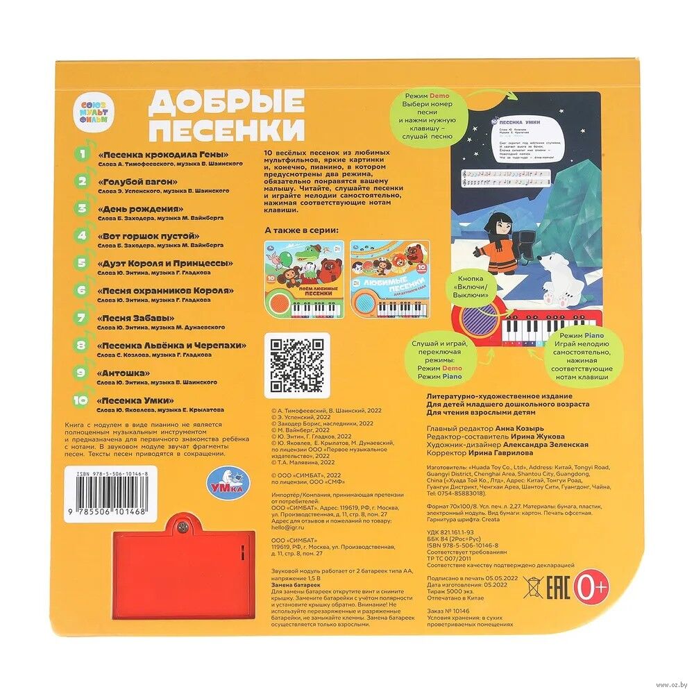 Книга-пианино "Союзмультфильм. Добрые песенки" станет прекрасным подарком для малыша: