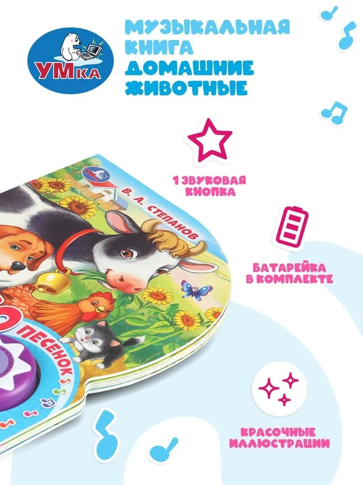 Музыкальная книга "В. Степанов. Домашние животные" станет прекрасным подарком для ребёнка: