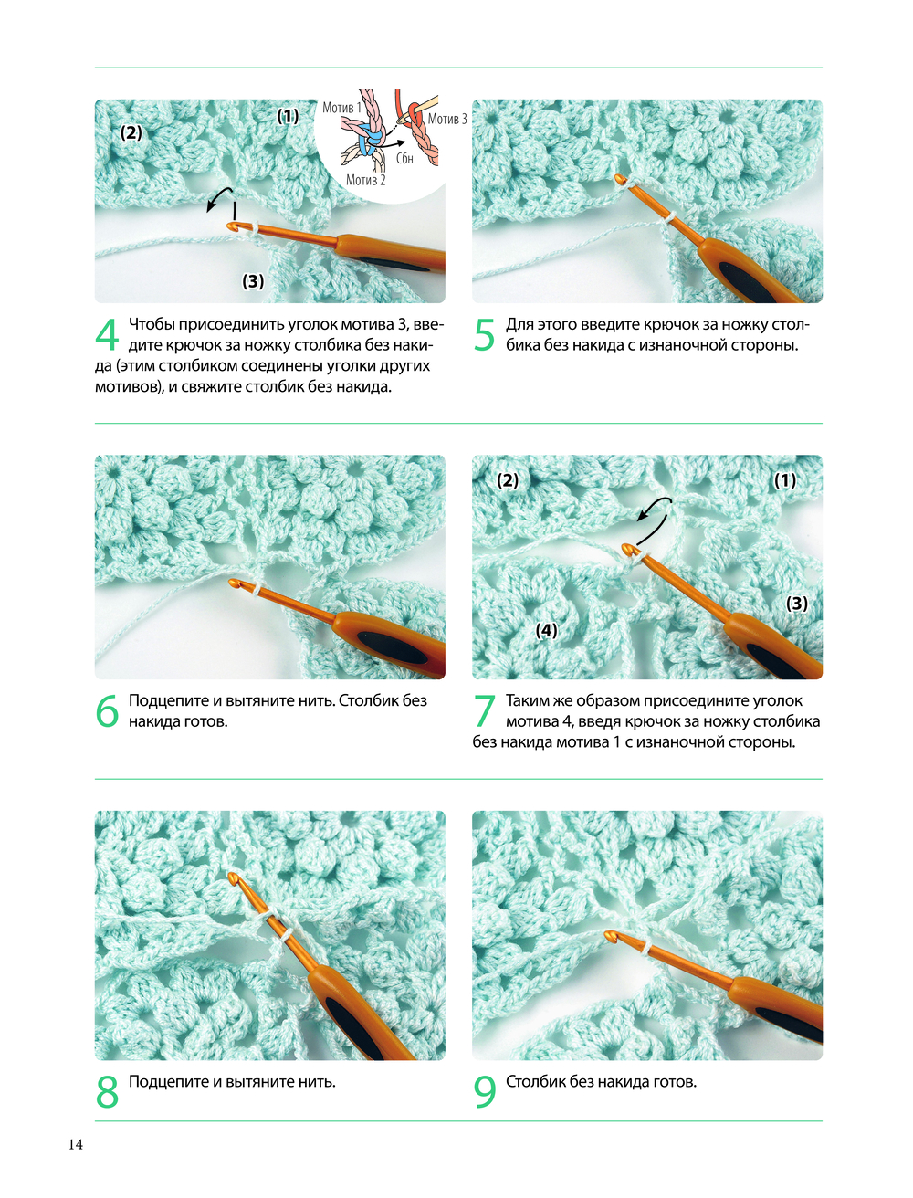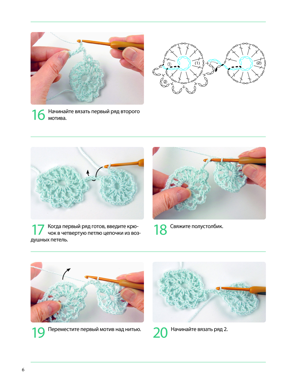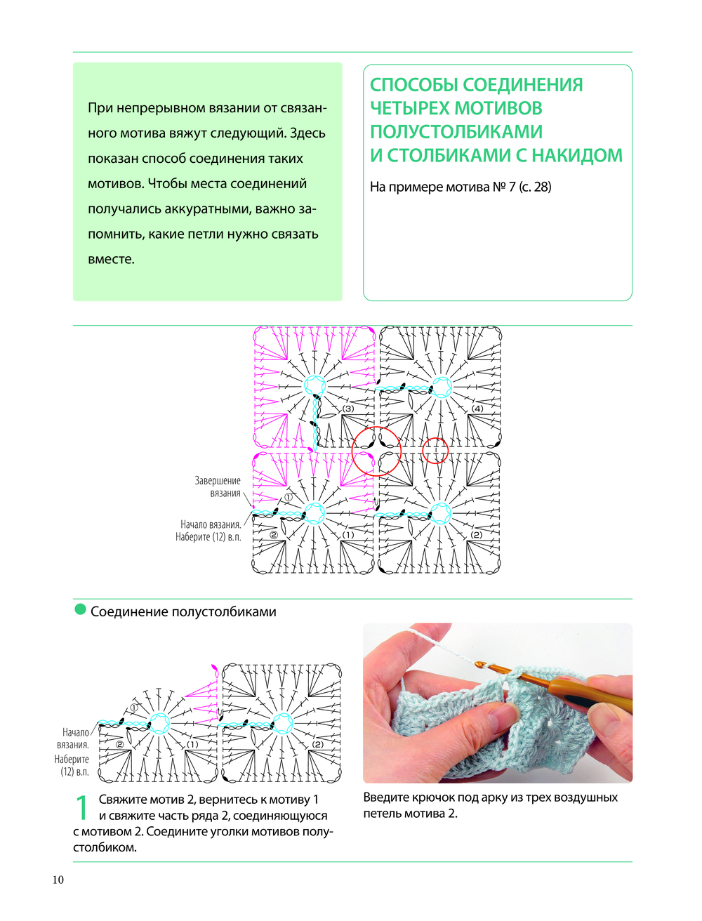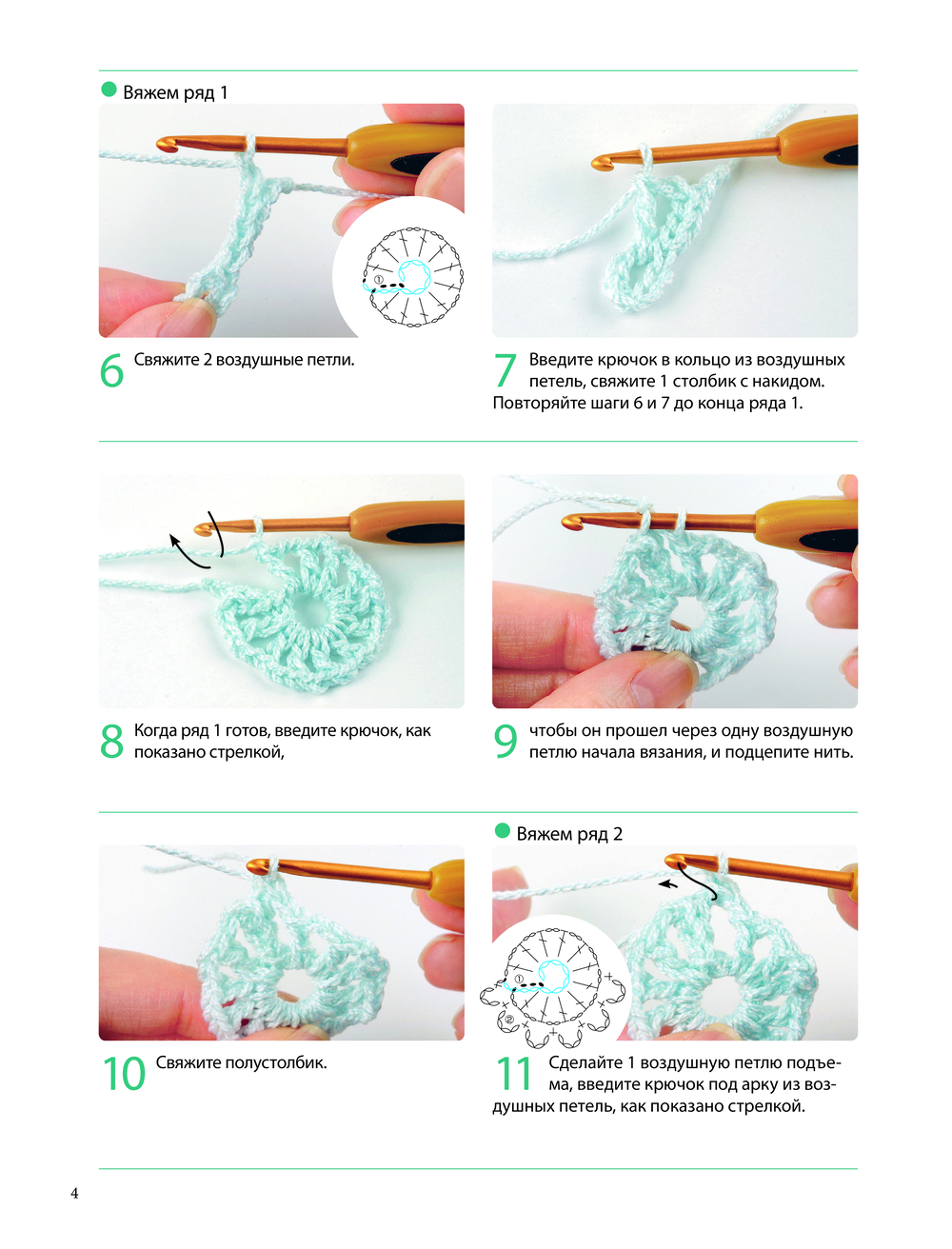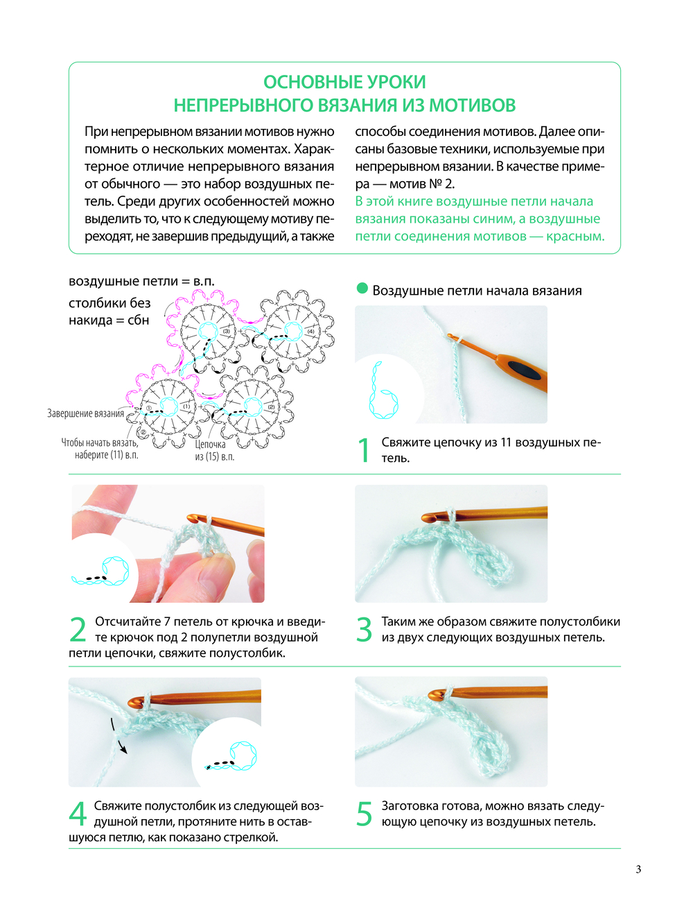 В помощь тем, кто только осваивает вязание или вкачестве справочника для опытных мастеров предлагается подробный и наглядный учебный раздел с основными приемами и техниками вязания крючком.
