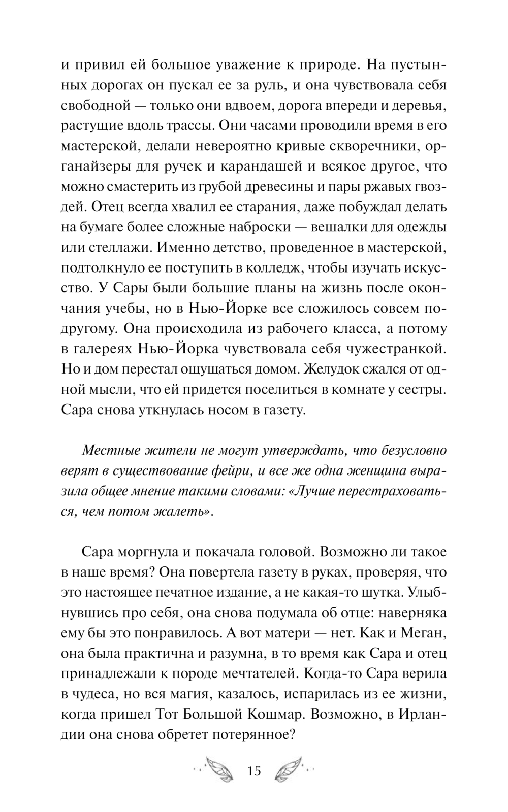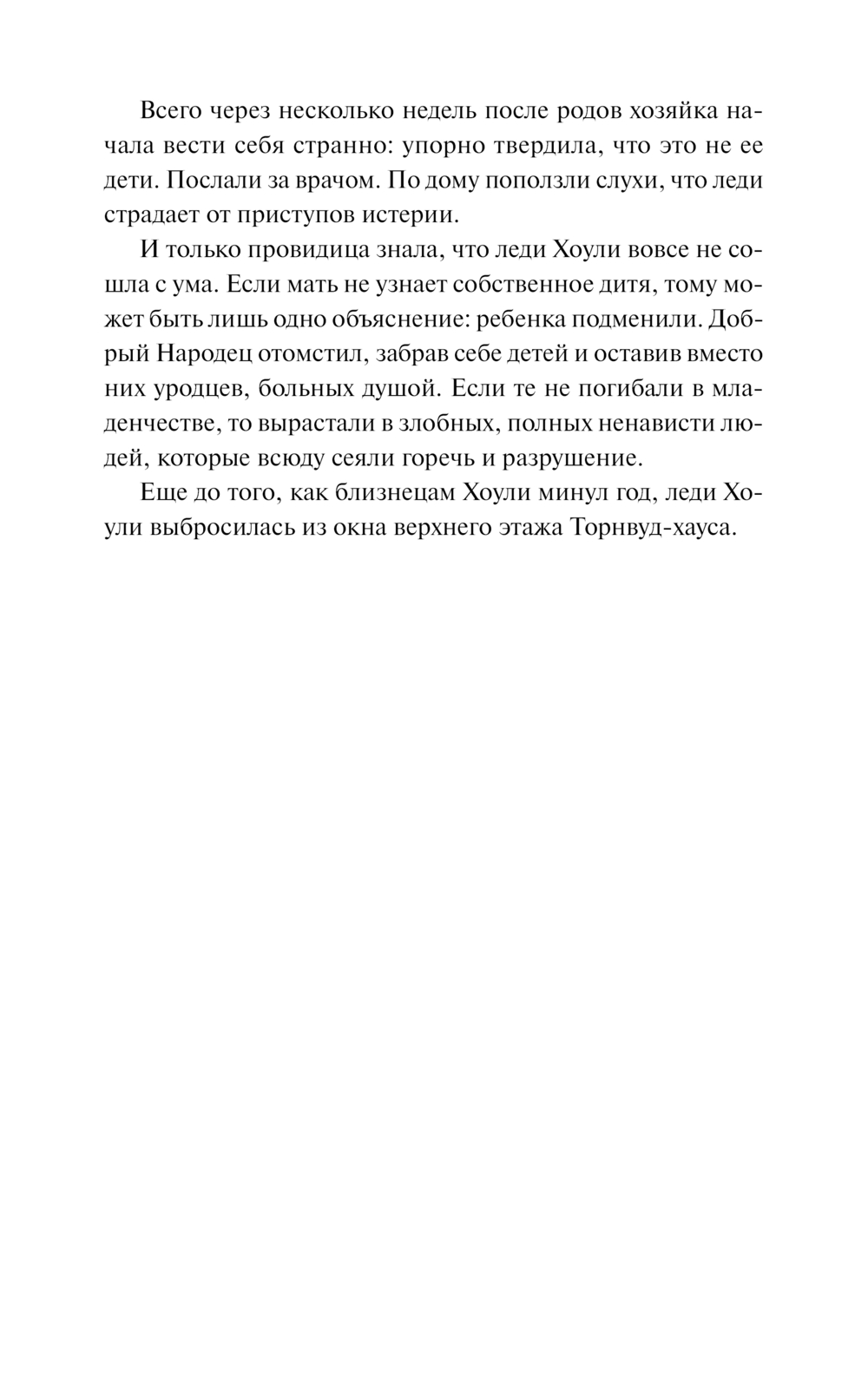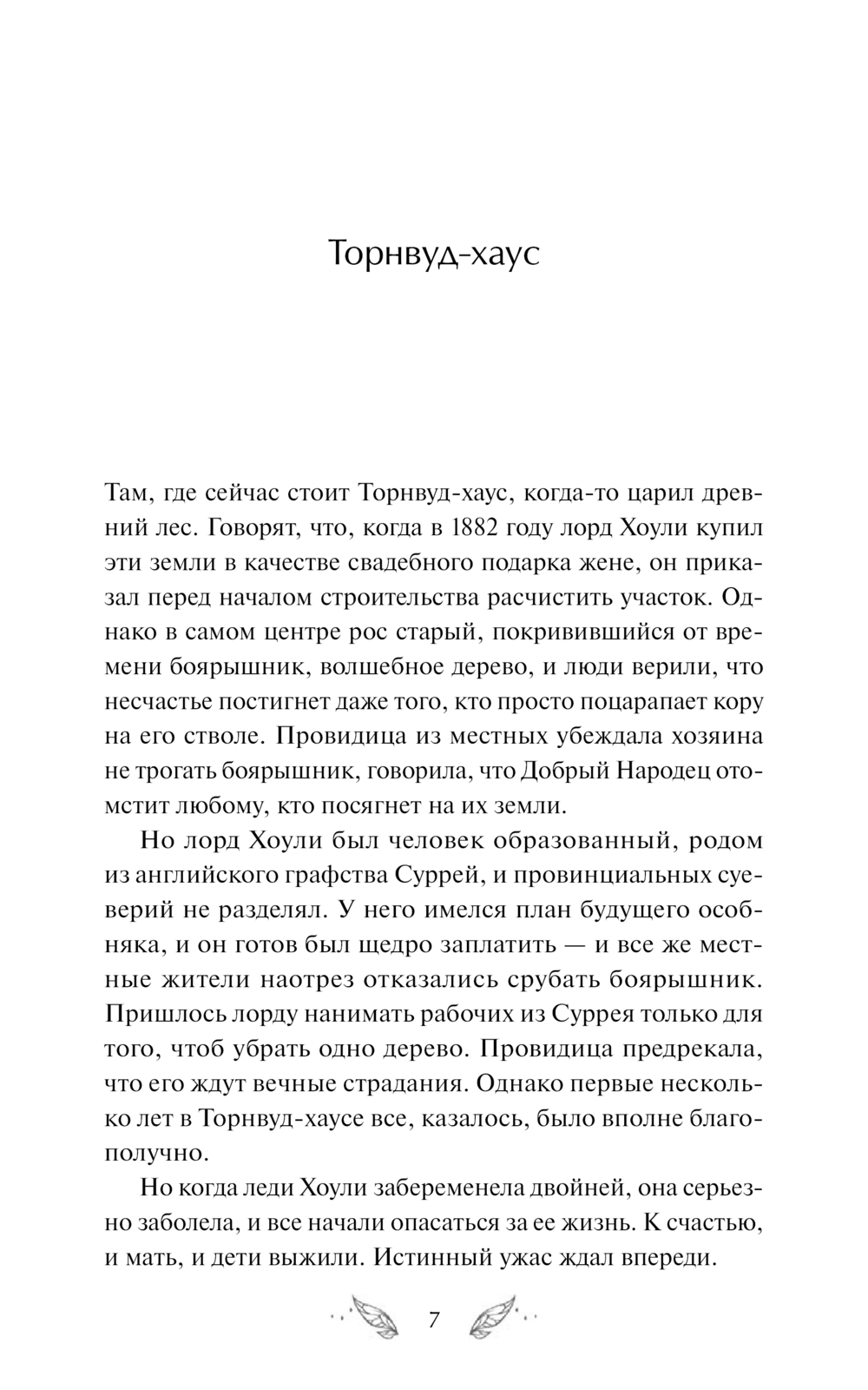 Сто лет назад Торнвуд принимал другого незваного гостя. Американский антрополог приехал в Ирландию, чтобы собирать предания о фейри. Его помощницей стала дочь фермера Анна – и вскоре девушка столкнулась с тайной, которая поставила под угрозу все, во что она верила. Свою историю Анна записывала в дневник, который теперь оказался в руках Сары...