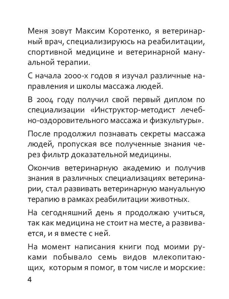 Максим Коротенко, ветеринарный врач-реабилитолог, покажет четкие, безопасные техники поглаживания и растирания, а также научит "читать" тело собаки и понимать, где ей больно, а где – приятно.