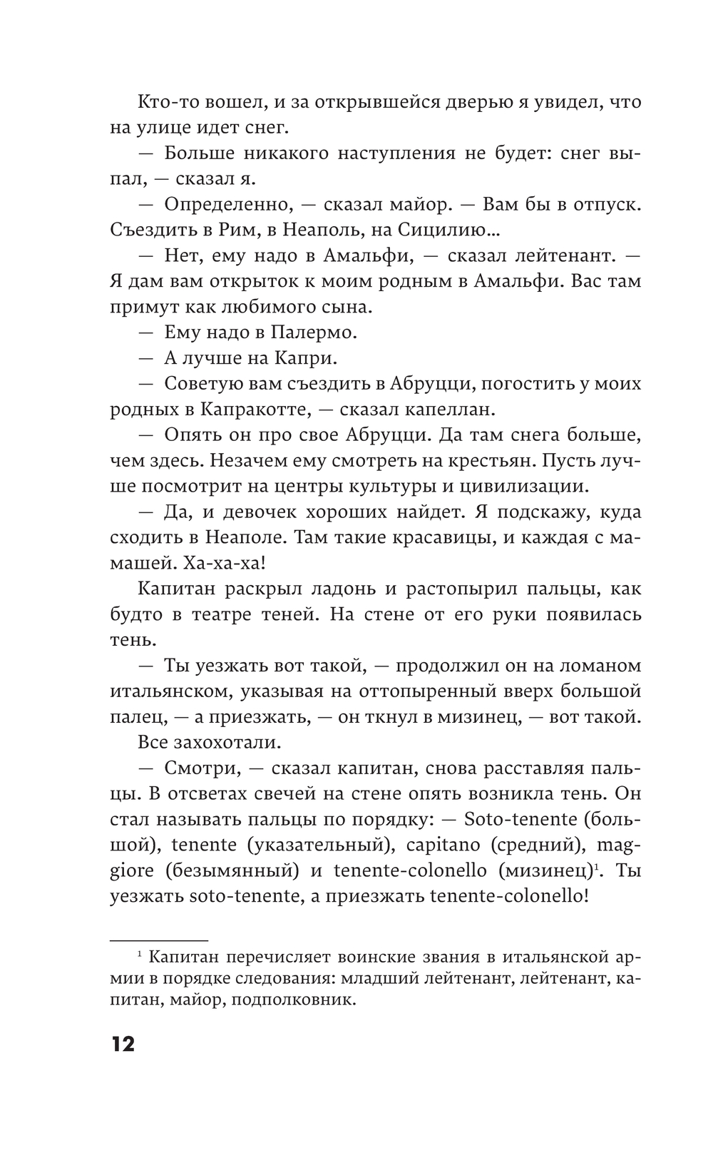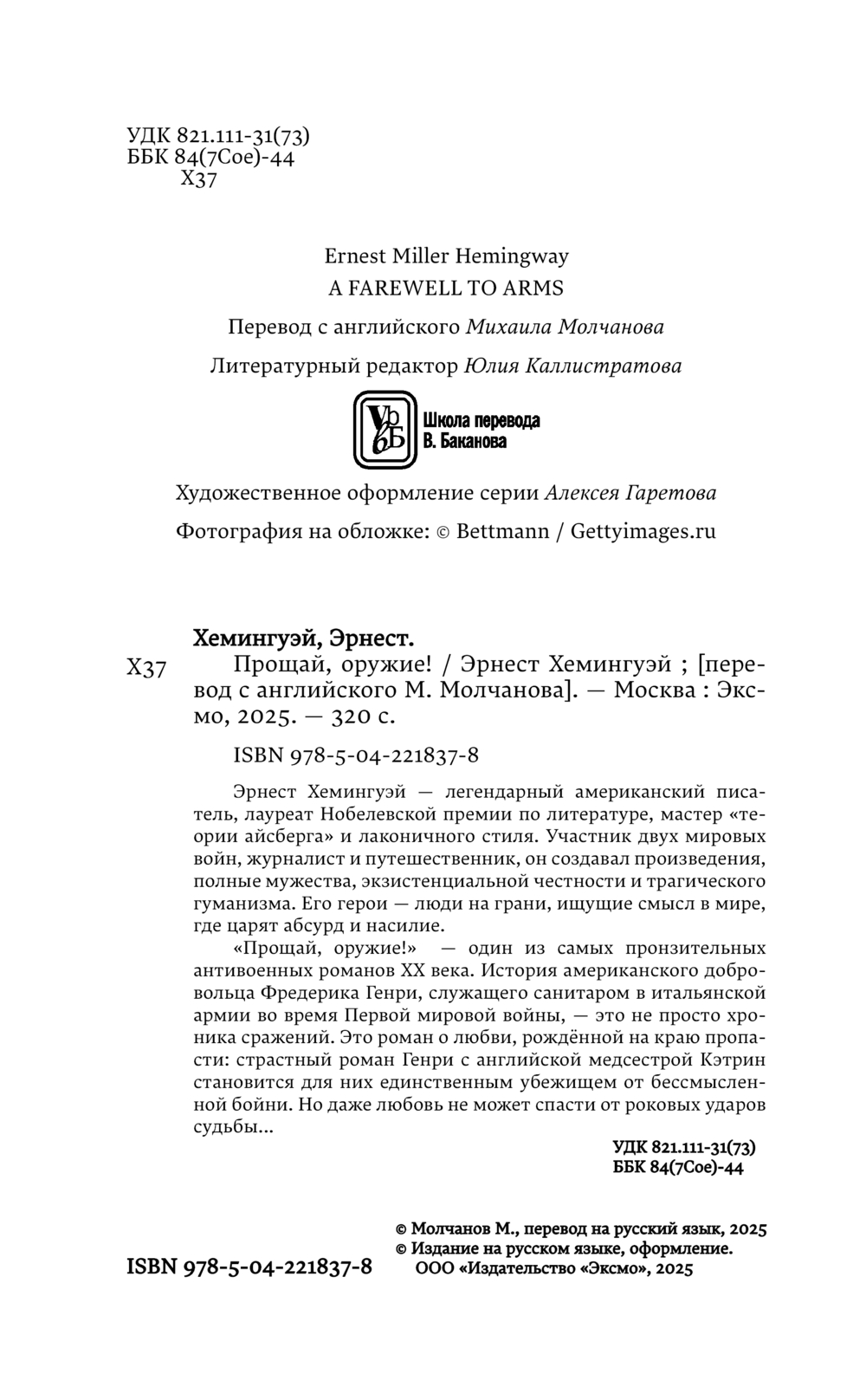"Прощай, оружие" – один из самых пронзительных антивоенных романов XX века. История американского добровольца Фредерика Генри, служащего санитаром в итальянской армии во время Первой мировой войны, – это не просто хроника сражений. Это роман о любви, рождённой на краю пропасти: страстный роман Генри с английской медсестрой Кэтрин становится для них единственным убежищем от бессмысленной бойни. Но даже любовь не может спасти от роковых ударов судьбы...