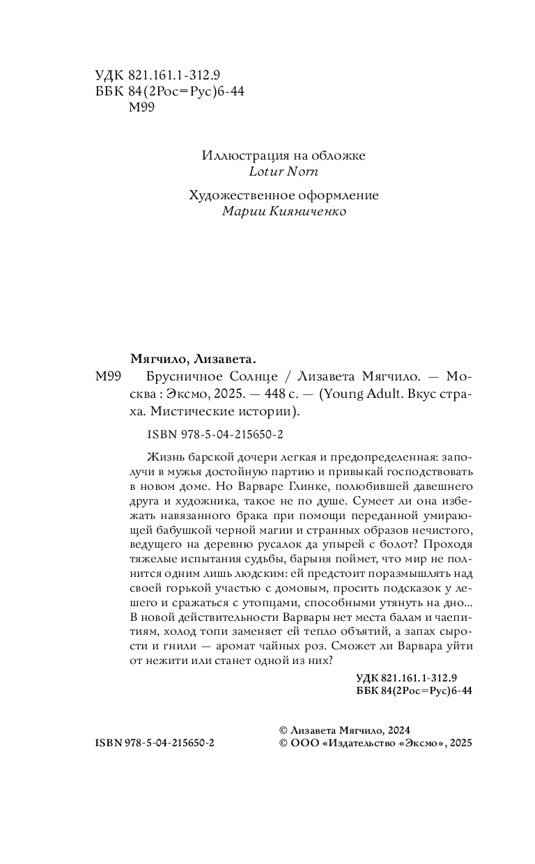 Жизнь барской дочери легкая и предопределенная: заполучи в мужья достойную партию и привыкай господствовать в новом доме. Но Варваре Глинке, полюбившей давешнего друга и художника, такое не по душе. Сумеет ли она избежать навязанного брака при помощи переданной умирающей бабушкой черной магии и странных образов нечистого, ведущего на деревню русалок да упырей с болот? Проходя тяжелые испытания судьбы, барыня поймет, что мир не полнится одним лишь людским: ей предстоит поразмышлять над своей горькой участью с домовым, просить подсказок у лешего и сражаться с утопцами, способными утянуть на дно… В новой действительности Варвары нет места балам и чаепитиям, холод топи заменяет ей тепло объятий, а запах сырости и гнили – аромат чайных роз. Сможет ли Варвара уйти от нежити, или станет одной из них?
