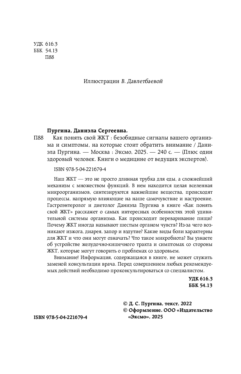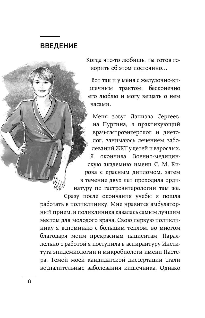 Наш ЖКТ – это не просто длинная трубка для еды, а сложнейший механизм с множеством функций. В нем находится целая вселенная микроорганизмов, синтезируются важнейшие вещества, происходят процессы, напрямую влияющие на наше самочувствие и настроение. Гастроэнтеролог и диетолог Даниэла Пургина в книге "Как понять свой ЖКТ" расскажет о самых интересных особенностях этой удивительной системы организма. Как происходит переваривание пищи? Почему ЖКТ иногда называют шестым органом чувств? Из-за чего возникают изжога, диарея, запор и вздутие? Какие виды боли характерны для ЖКТ и что они могут означать? Что такое микробиота? Вы узнаете об устройстве желудочно-кишечного тракта и симптомах со стороны ЖКТ, которые могут говорить о проблемах со здоровьем.