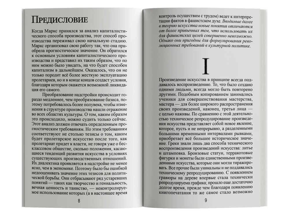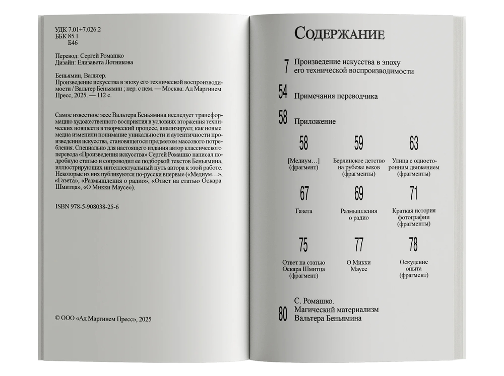 Самое известное эссе Вальтера Беньямина исследует трансформацию художественного восприятия в условиях вторжения технических новшеств в творческий процесс, анализирует, как новые медиа изменили понимание уникальности и аутентичности произведения искусства, становящегося предметом массового потребления. Специально для настоящего издания автор классического перевода "Произведения искусства" Сергей Ромашко написал подробную статью и сопроводил ее подборкой текстов Беньямина, иллюстрирующих интеллектуальный путь автора к этой работе. Некоторые из них публикуются по-русски впервые ("Медиум…", "Газета", "Размышления о радио", "Ответ на статью Оскара Шмитца", "О Микки Маусе").