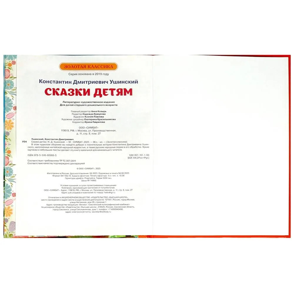 В сборник вошли произведения известного русского писателя Константина Дмитриевича Ушинского, наполненные житейской народной мудростью, а также русские народные сказки в его обработке. Красочные иллюстрации Ксении Павловой дополнят повествование и помогут привить ребенку любовь к чтению.