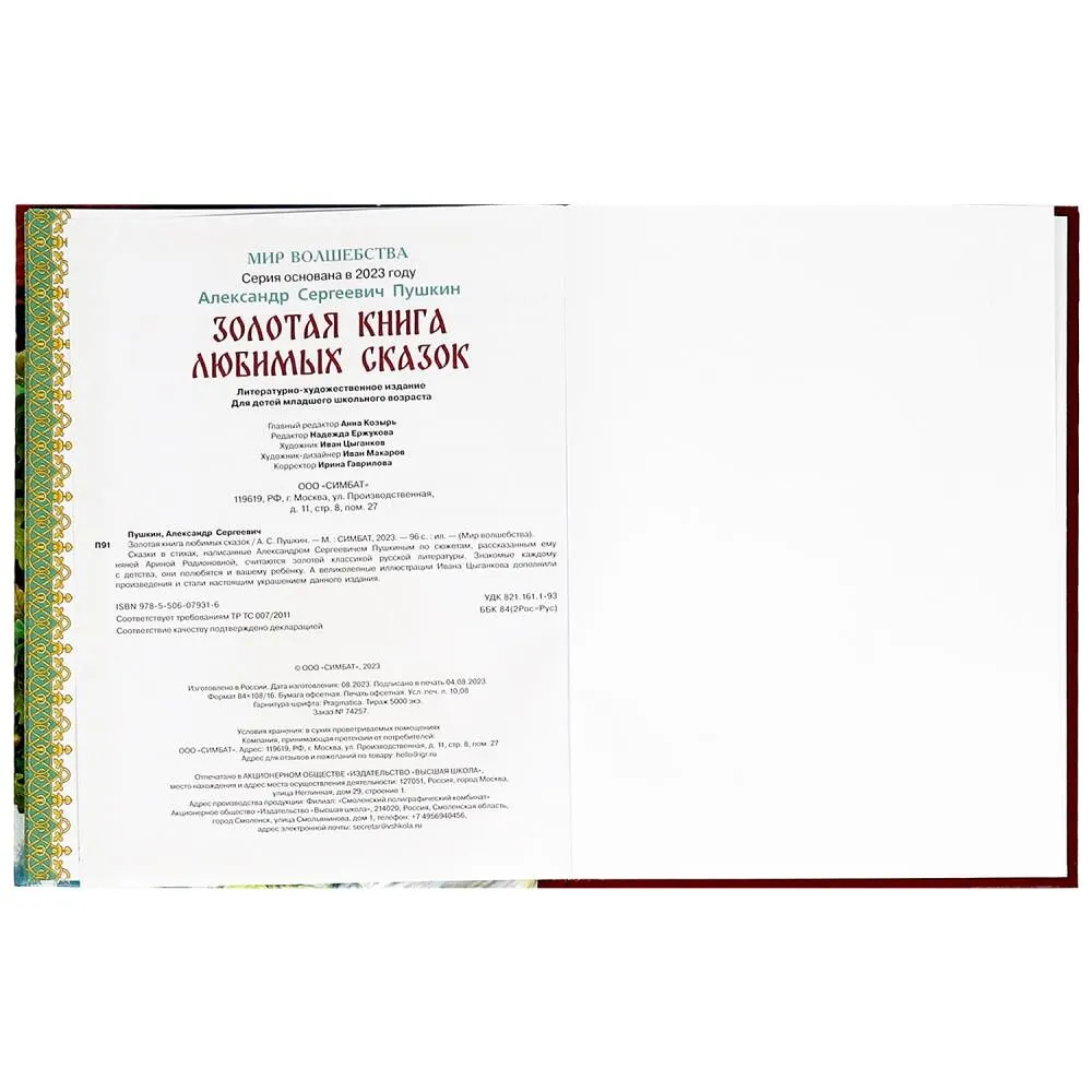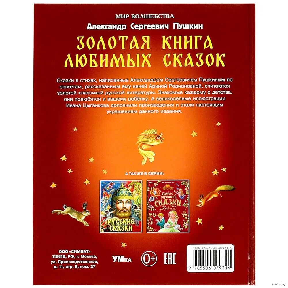 Сказки в стихах, написанные Александром Сергеевичем Пушкиным по сюжетам, рассказанным ему няней Ариной Родионовной, считаются золотой классикой русской литературы. Знакомые каждому с детства, они полюбятся и вашему ребенку. А великолепные иллюстрации Ивана Цыганкова дополнили произведения и стали настоящим украшением данного издания.
