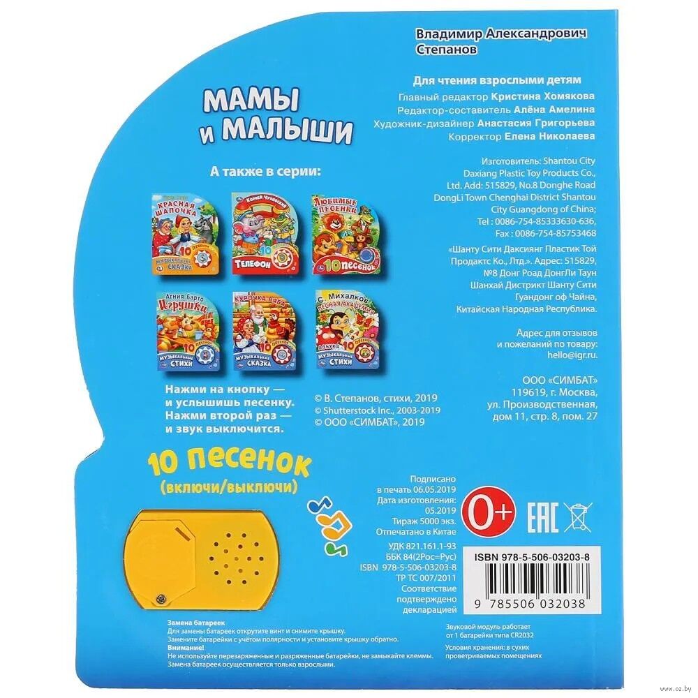 Музыкальная книжка "Мамы и малыши. В. Степанов" станет прекрасным подарком для ребёнка: