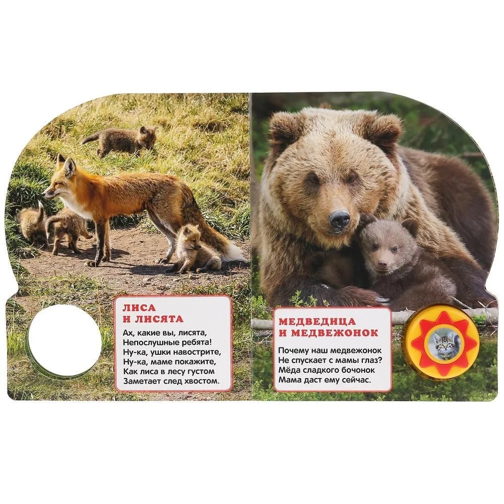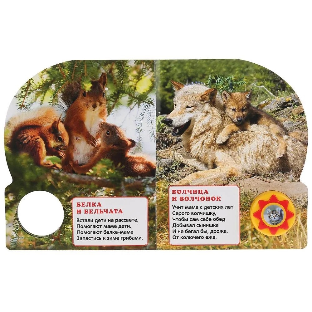 Малыш будет с удовольствием рассматривать яркие страницы с изображением животных, читать стихи и слушать песенки. Одно нажатие на кнопку – песенка включится, второе нажатие – выключится. Книжка сделана из плотного картона, поэтому родители могут не опасаться за её сохранность. Благодаря компактному формату её удобно брать с собой.