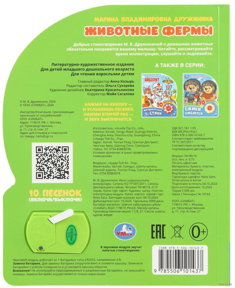 Животные фермы. Музыкальная книга (1 кнопка + 10 песен)