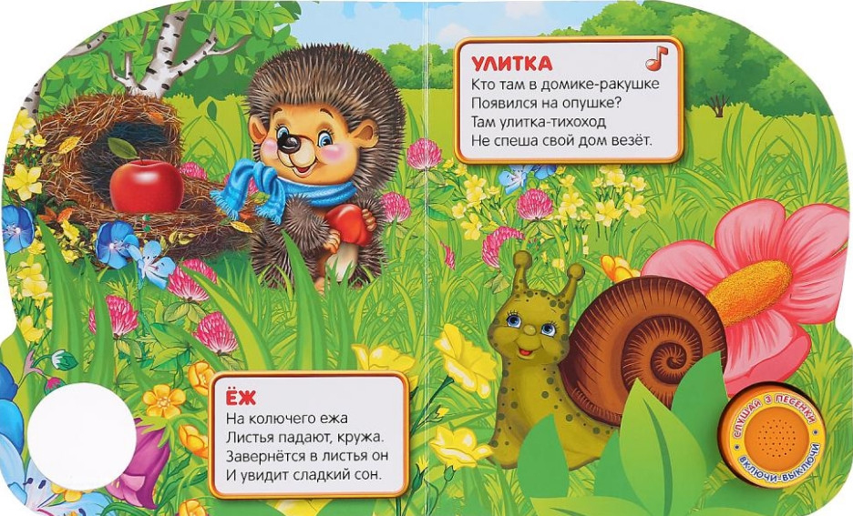 Малыш будет с удовольствием рассматривать яркие страницы с изображением животных, слушать песни, подпевать и даже танцевать. Ребёнок легко освоит включение звука: по нажатию на кнопку начинает проигрываться песенка, при втором нажатии звук выключится. Нажав на кнопку ещё раз ребёнок, услышит следующую песню. Композиции исполняются профессиональными артистами.