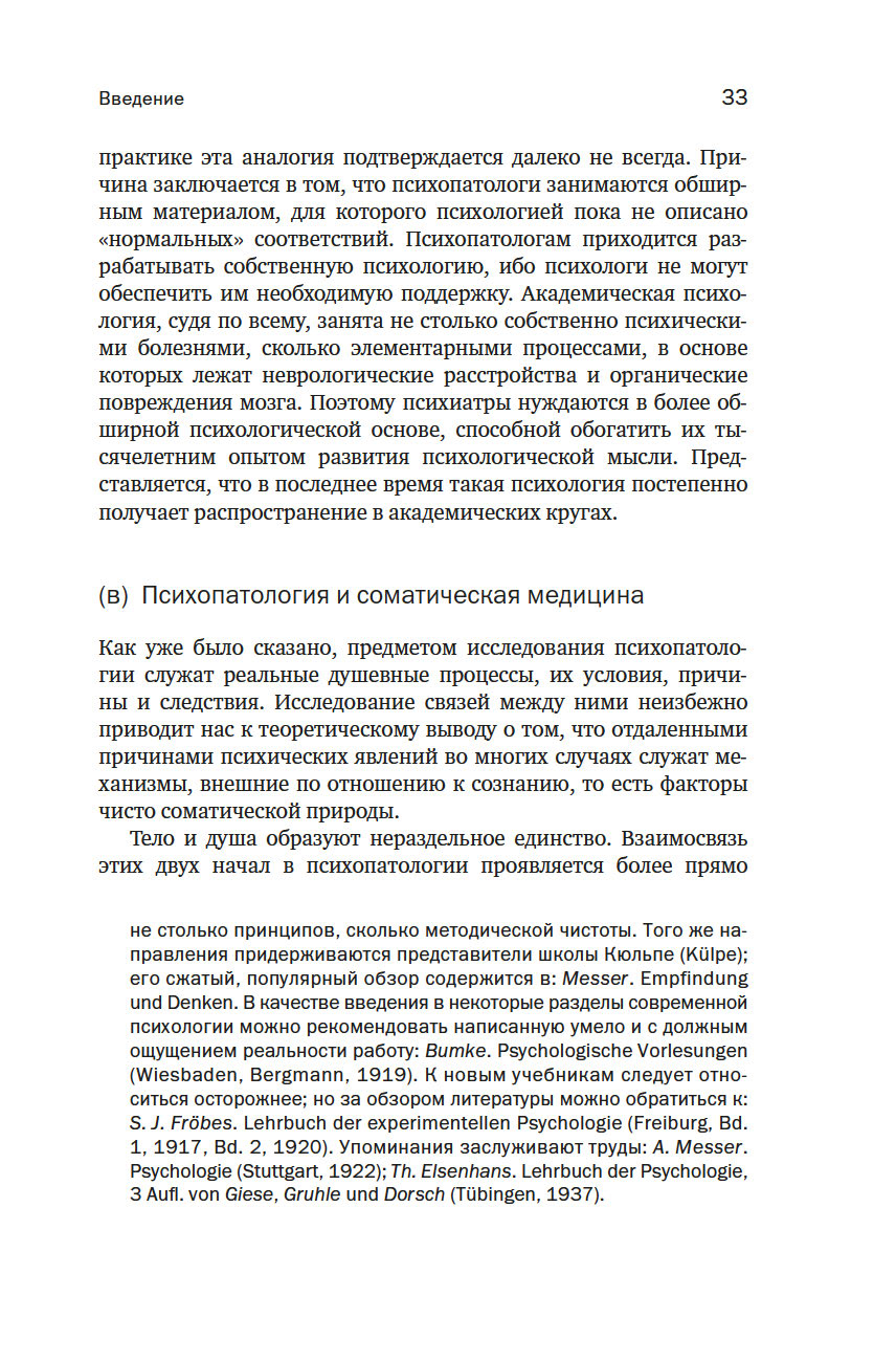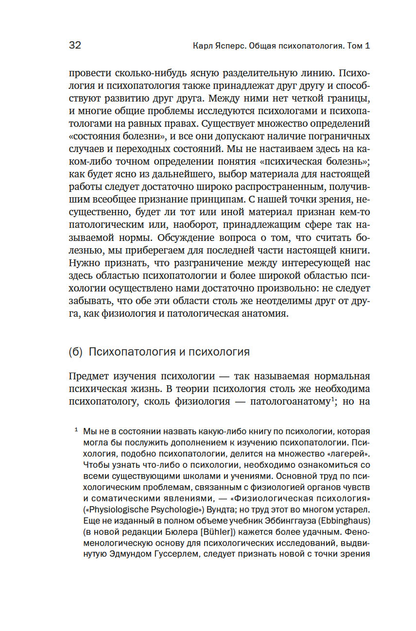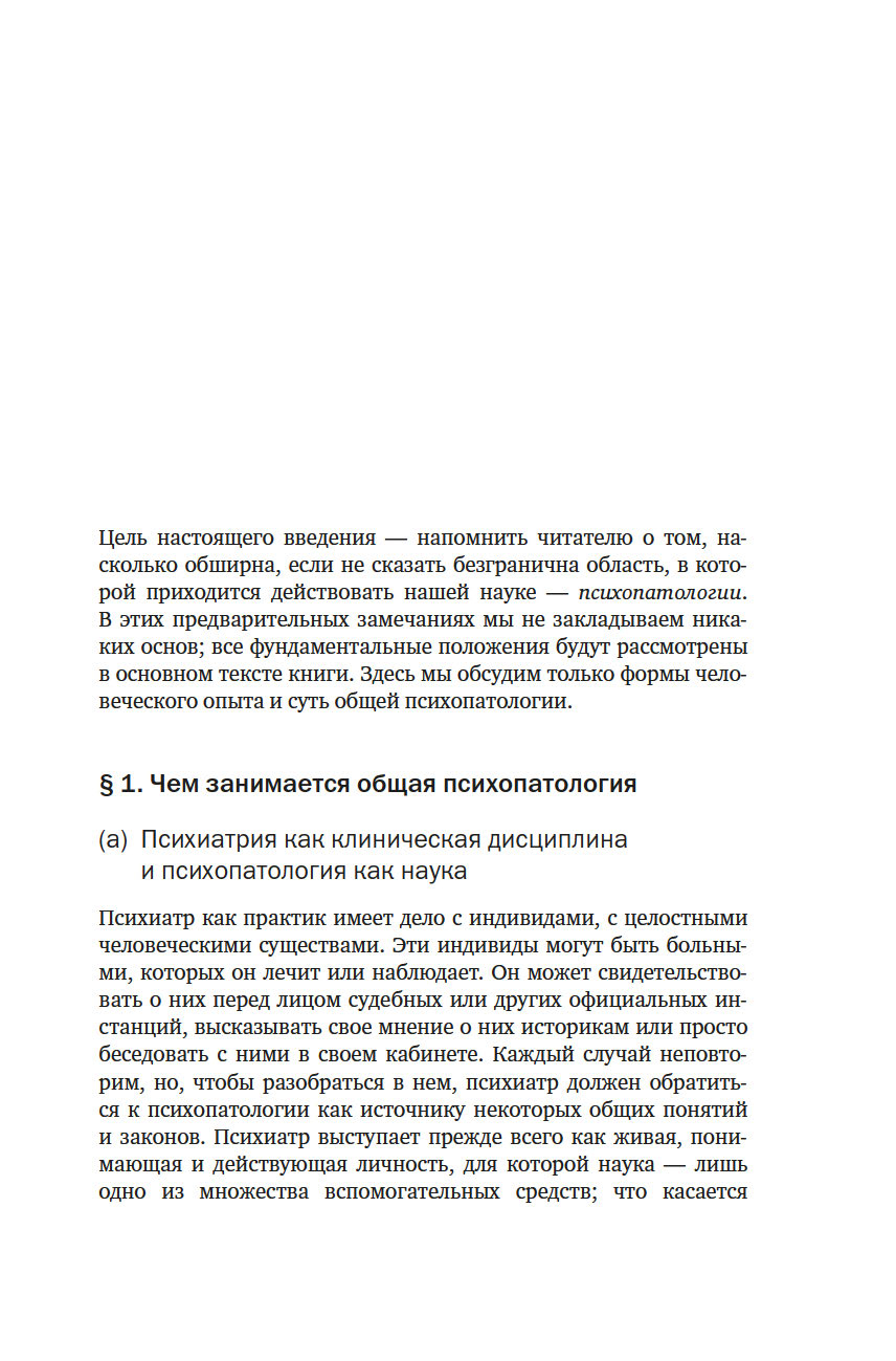 Карл Ясперс (1883–1969) прославился в первую очередь как философ, один из основоположников экзистенциализма, чье влияние отмечали Альбер Камю, Жан-Поль Сартр, Ханна Арендт. Однако Ясперс был не только философом, но и врачом-психиатром, и выросшая из его докторской диссертации "Общая психопатология" – результат нескольких лет работы в психиатрической больнице. Ясперс был глубоко не удовлетворен существовавшими в его время подходами к изучению и лечению душевных болезней, он считал, что эта отрасль медицины находится в глубоком кризисе, и поставил себе амбициозную задачу разработать новые научные основания для психиатрии. Фактически он создал философию психиатрии, разработал новый язык и категориальный аппарат для описания и классификации психических расстройств.