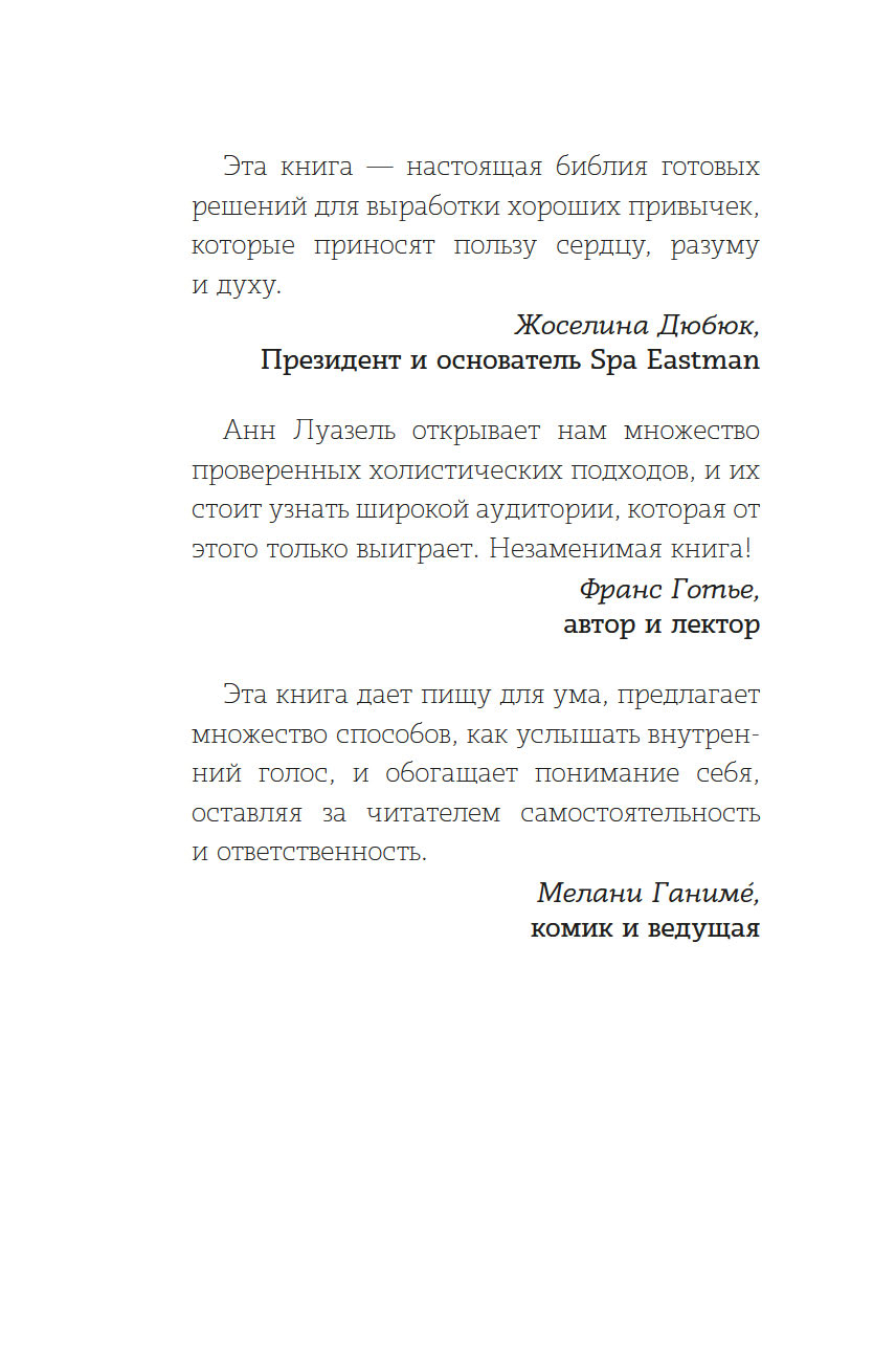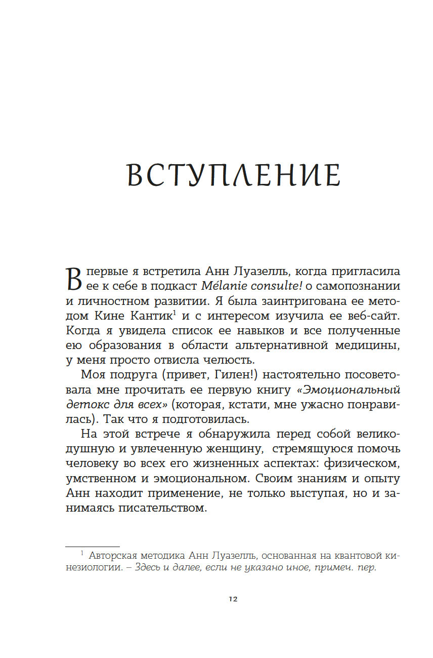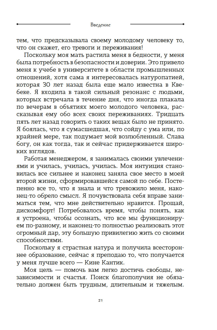 В этой книге, дорогие читатели, вы познакомитесь с авторским методом Анн Луазелль – Кине Кантик, помогшим сотням людей достичь благополучия. Это комплексный метод для раскрытия энергии ваших чакр, в основе которого лежат как тысячелетние духовные практики, так и достижения современной медицины и нейронаук: от китайской медицины, йоги и медитаций до психологических техник и советов по питанию. Эта книга также замечательна тем, что вы можете сами выбирать, какие инструменты использовать на пути к благополучию – натуропатия, психология, йога, эфирные масла или камни – по методу Луазелль оно все работает.