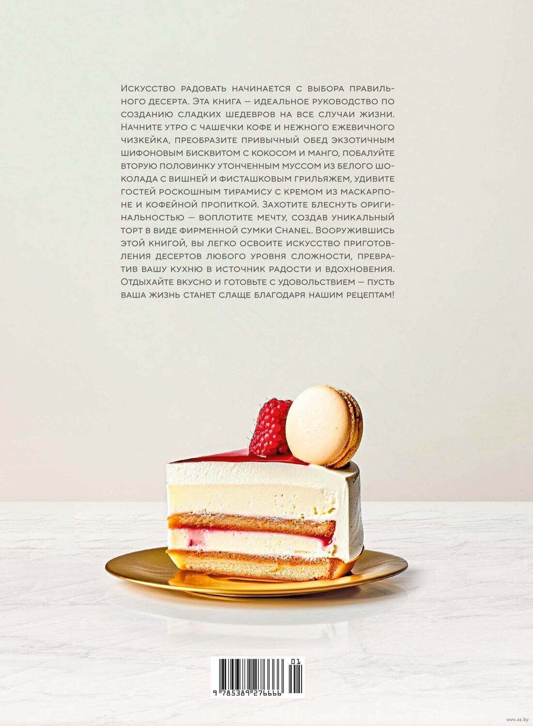 Откройте секреты приготовления знаменитого тирамису с кремом из маскарпоне и кофейной пропиткой, порадуйте близких и подайте к чаю профитроли с шоколадным кремом, попробуйте экзотичный шафрановый бисквит с кокосом и манго, удивите гостей уникальным тортом в виде фирменной сумки Chanel и побалуйте вторую половинку утонченным муссом из белого шоколада с вишней и фисташковым грильяжем. От приготовления базового теста до декорирования праздничных тортов – вооружившись этой книгой вы познаете все грани кондитерского искусства и почувствуете наслаждение в каждом кусочке!