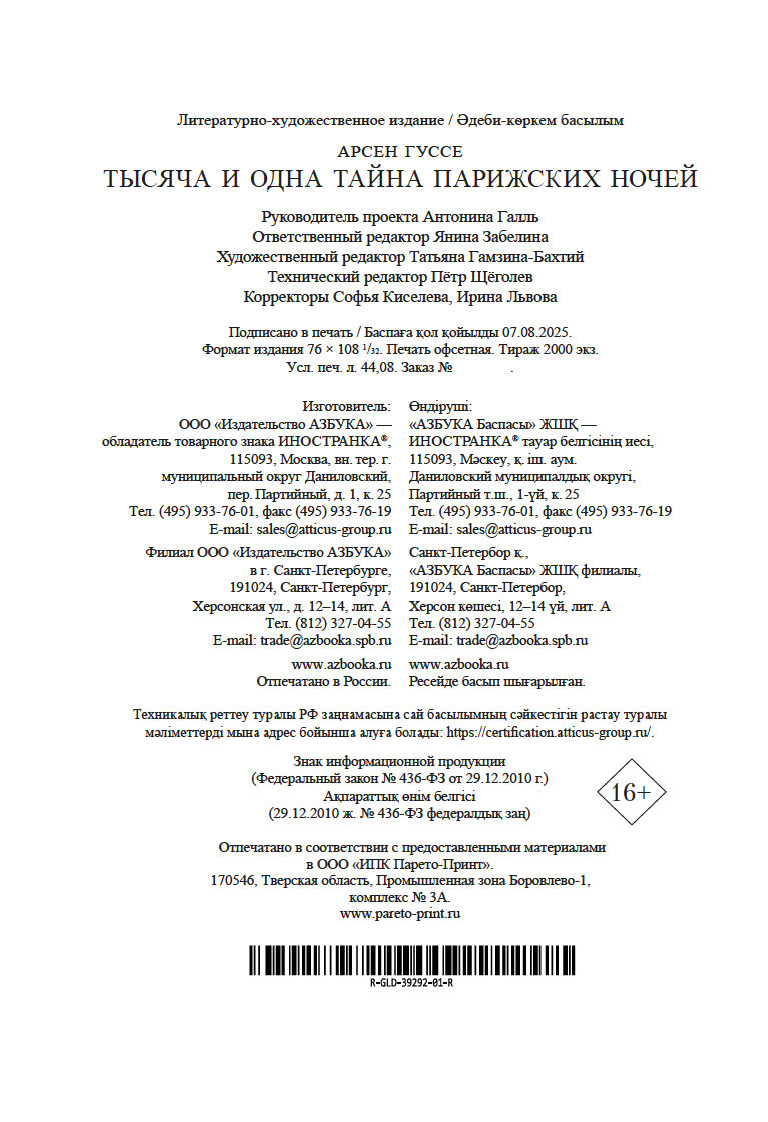 | Изготовитель | ООО "Издательство "Иностранка". 109017, РФ, г. Москва, ул. Пятницкая, 41 |