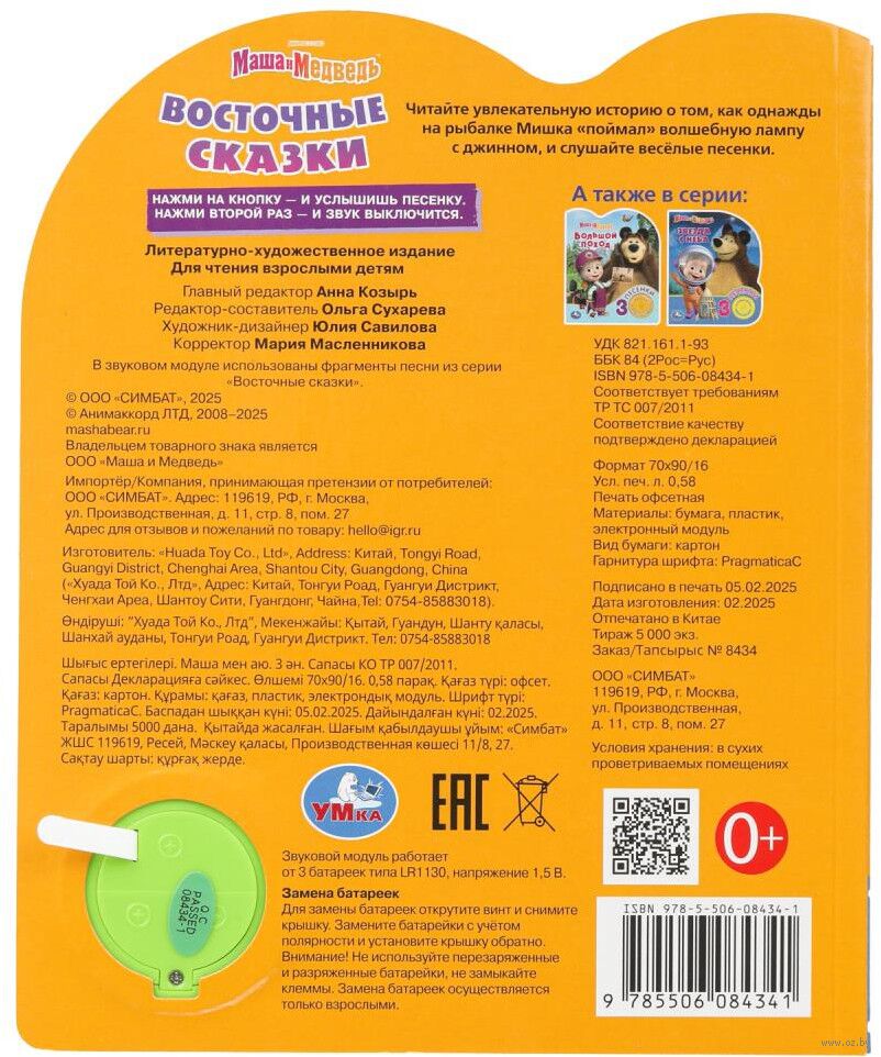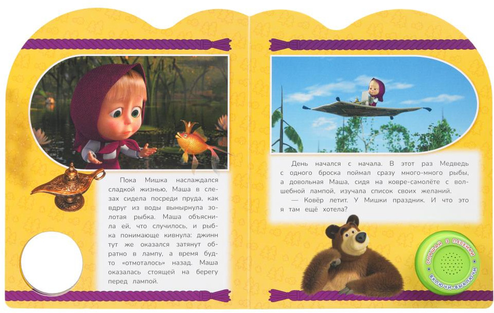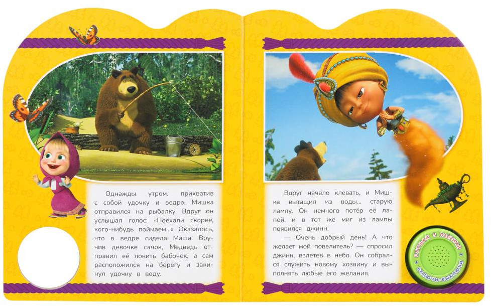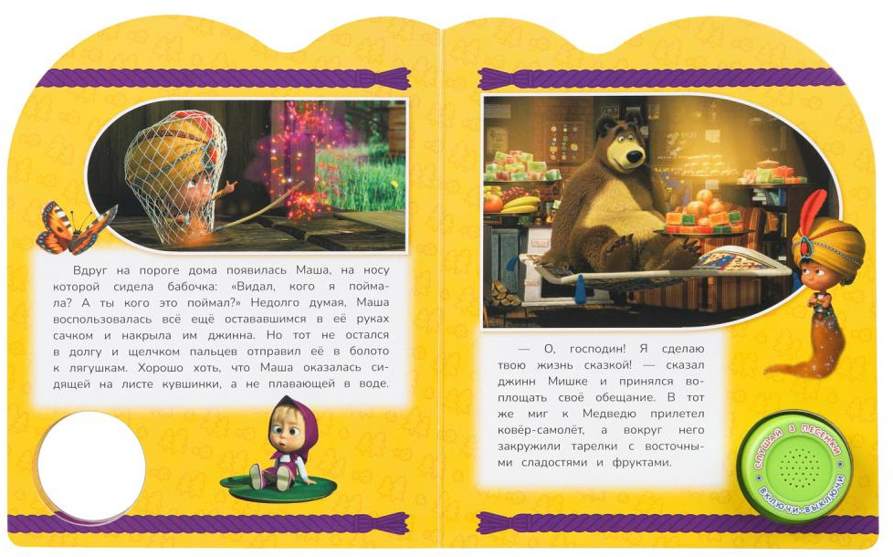 Музыкальная книга "Маша и Медведь. Восточные сказки" станет прекрасным подарком для маленьких поклонников известного мультсериала про непоседливую и любознательную девочку и её друга Мишку. Ребёнок с удовольствием будет листать плотные страницы, рассматривать яркие картинки с изображением любимых мультгероев и, конечно, нажимать на кнопку и слушать весёлые песенки.