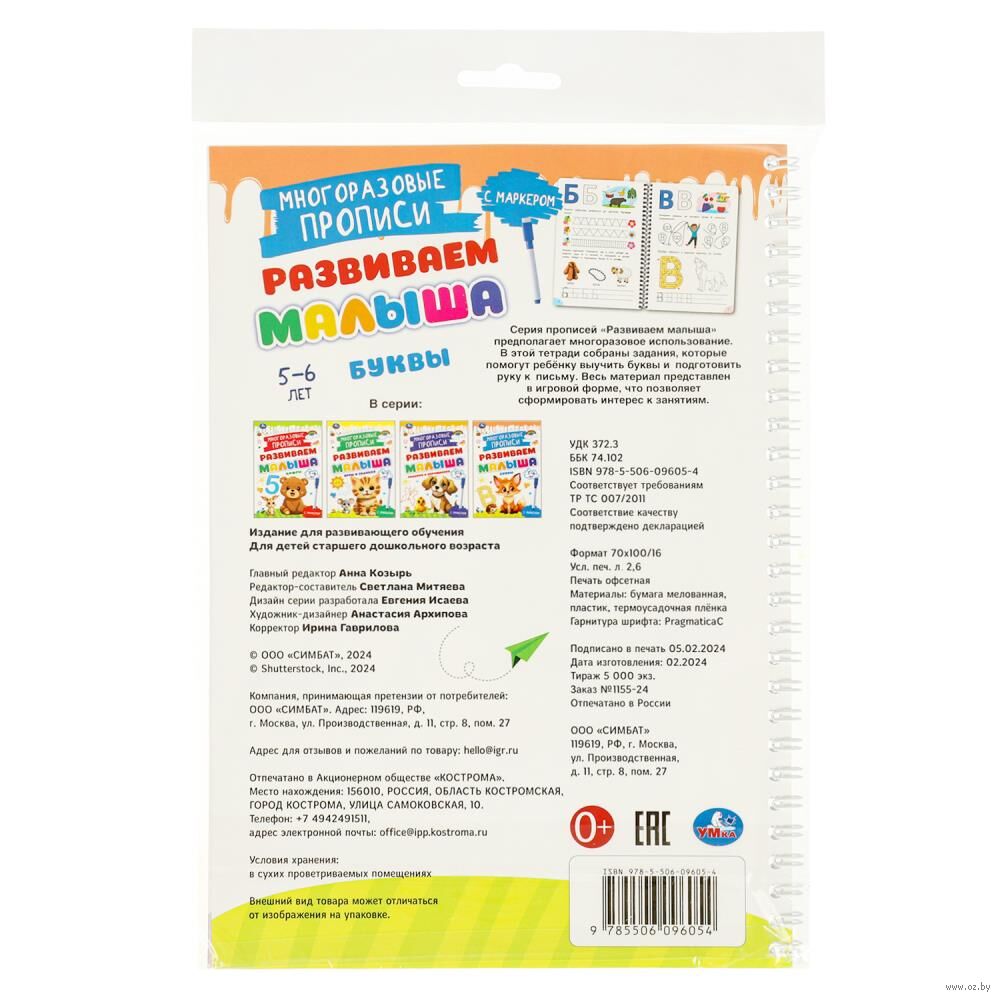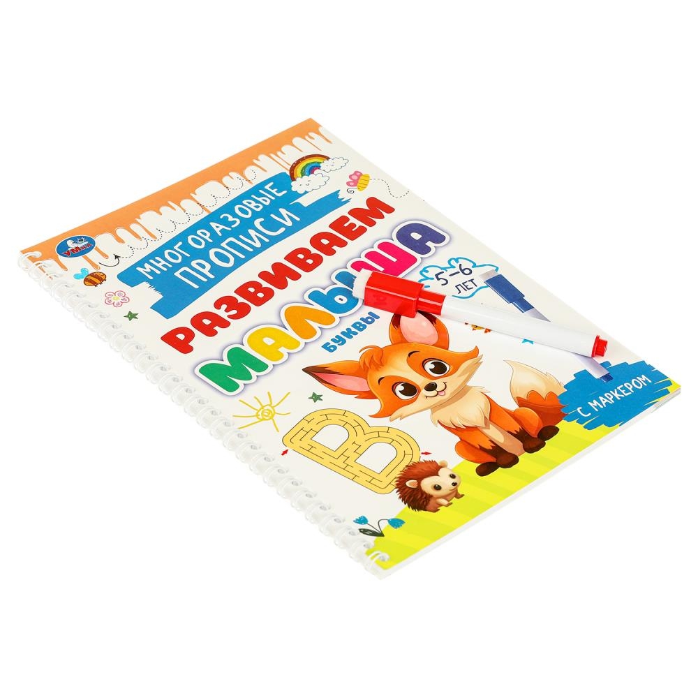 Многоразовые прописи с маркером "Буквы, для детей 5-6 лет" из серии "Развиваем малыша" – отличный тренажёр для развития графомоторных навыков: