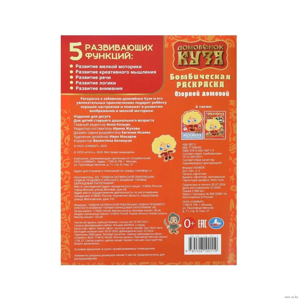 Эта занимательная раскраска про приключения забавного домовенка Кузю не только скрасит досуг ребенка, но и поможет потренировать руку к письму. Внутри детей ожидают интересные картинки с четким контуром и сюжетные тексты к ним. Благодаря удобному формату раскраску можно взять с собой в дорогу.