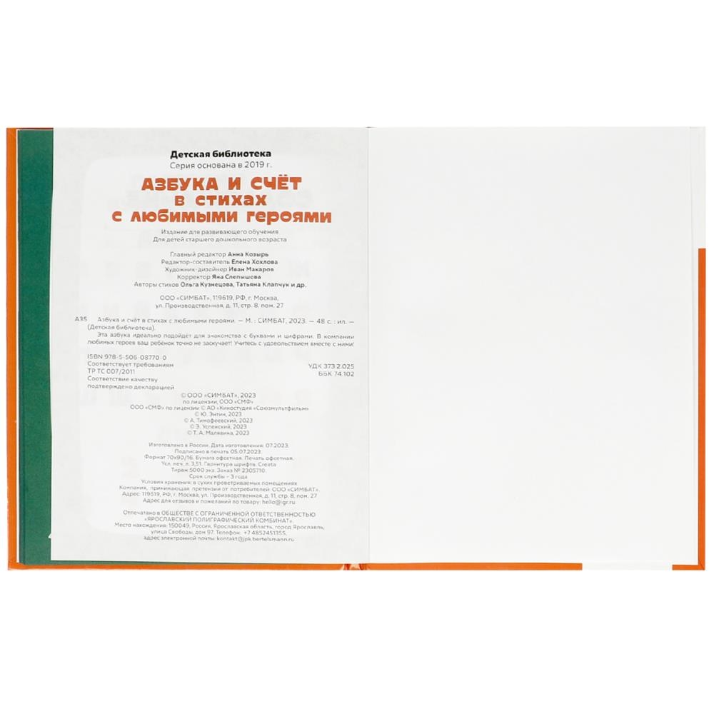 Книга "Азбука и счёт в стихах с любимыми героями" из серии "Детская библиотека" – замечательный подарок для детишек, которые только учатся читать и считать: