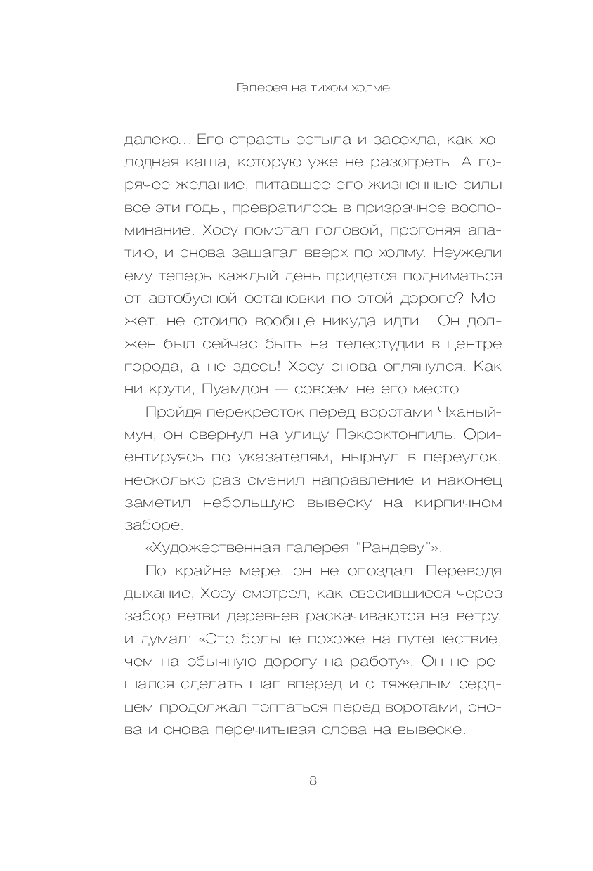 В тихом районе центра Сеула спрятана необычная художественная галерея "Рандеву". В ней нет толп туристов и залов с многочисленными экспонатами. Здесь выставляют лишь одну работу – ту, что создана по чьей-то настоящей истории. В "Рандеву" искусство оживает, говорит, движется. И отвечает на самые важные вопросы. Однажды сюда приходит Хосу – молодой человек, уставший бороться за свои мечты. Вместо желаемой должности диктора он получает предложение работать в галерее. И почти отказывается. Но именно в этом странном и тихом месте он впервые за долгое время слышит – не других, а самого себя. Здесь Хосу встречает людей, которые будто отражают его собственные страхи – старика, прячущего глубокое одиночество за ворчанием; женщину, которая устала быть сильной; мужчину, потерявшего буквально все. Это история о тех, кто устал – но не сдался. О месте, где чужие истории помогают узнать себя.