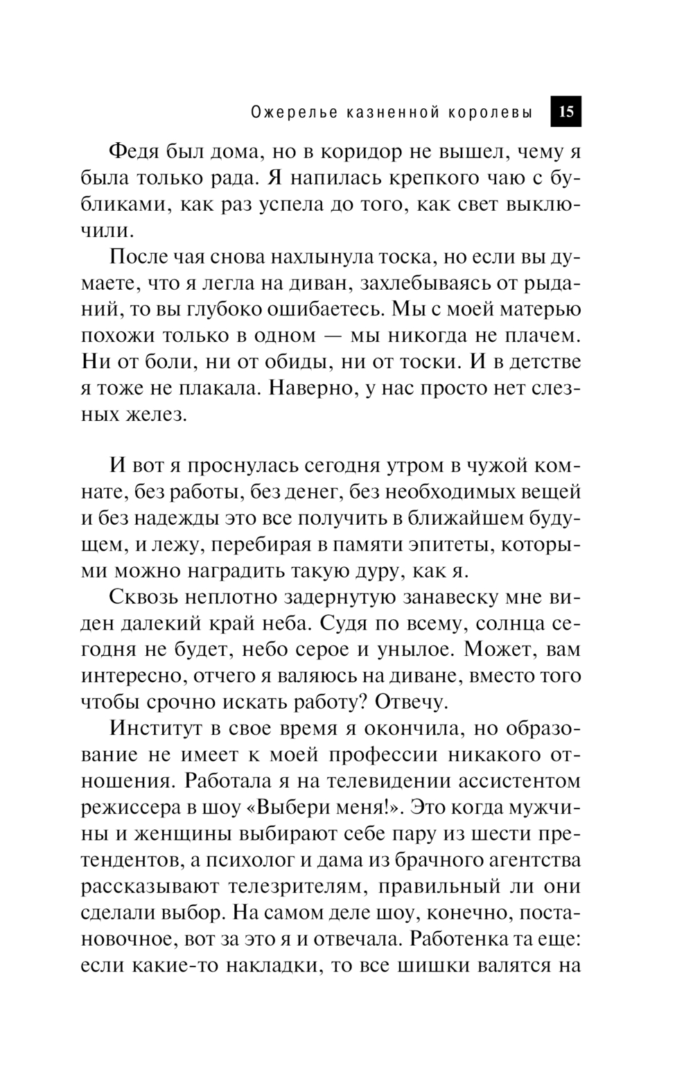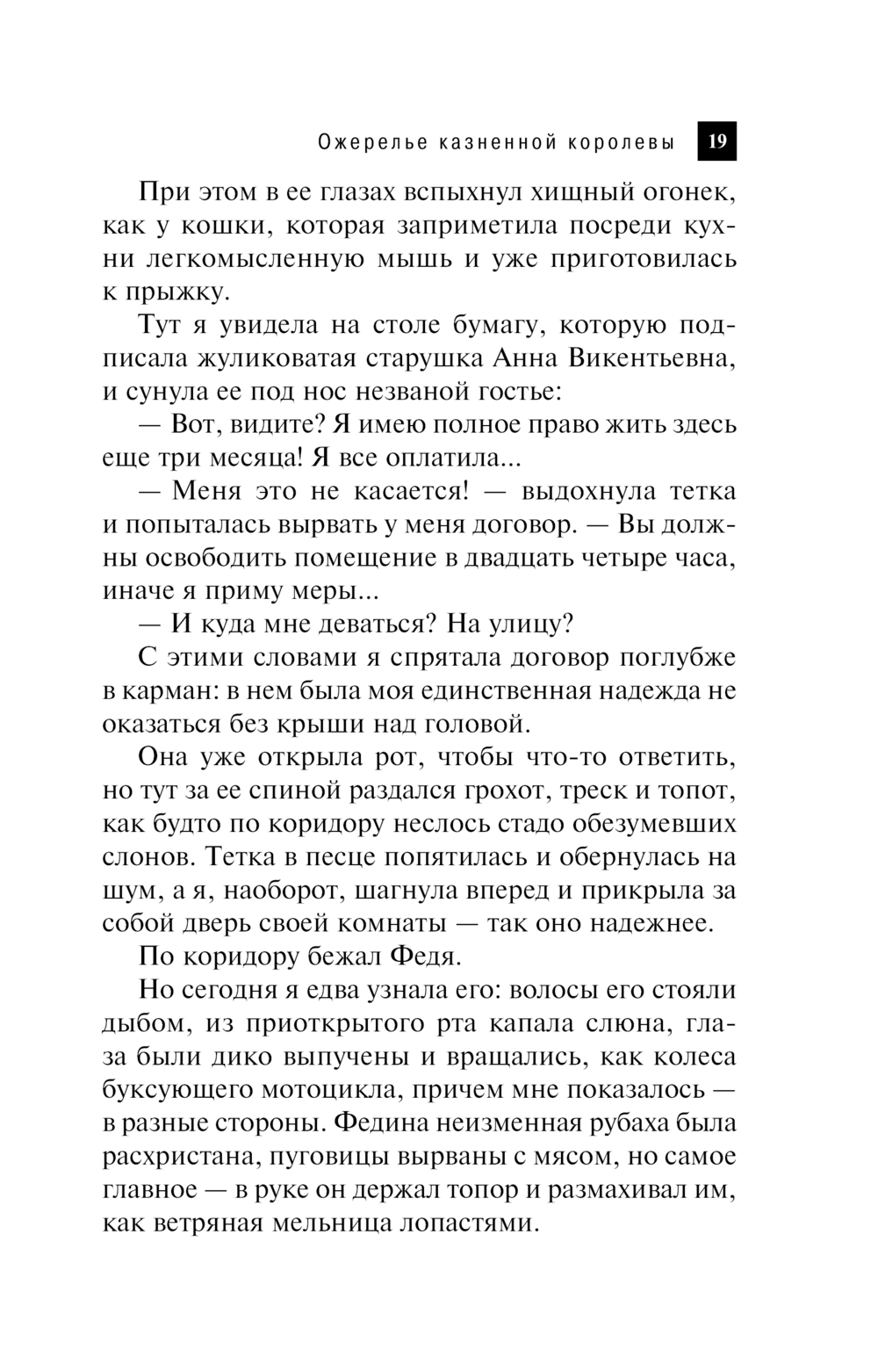 Более двухсот лет назад авантюристка Жанна де Ламотт осуществила аферу со знаменитым ожерельем французской королевы. Конец жизни де Ламотт встретила в России. Так, может, именно здесь она спрятала ожерелье Марии-Антуанетты?.. Жанна Окунева обнаружила тайник в старой печке в предназначенном под снос доме, там были лишь тетрадка и открытка. А вдруг это – ключ к поиску клада? Однако мало иметь ключ, неплохо бы знать, какой замок он открывает...