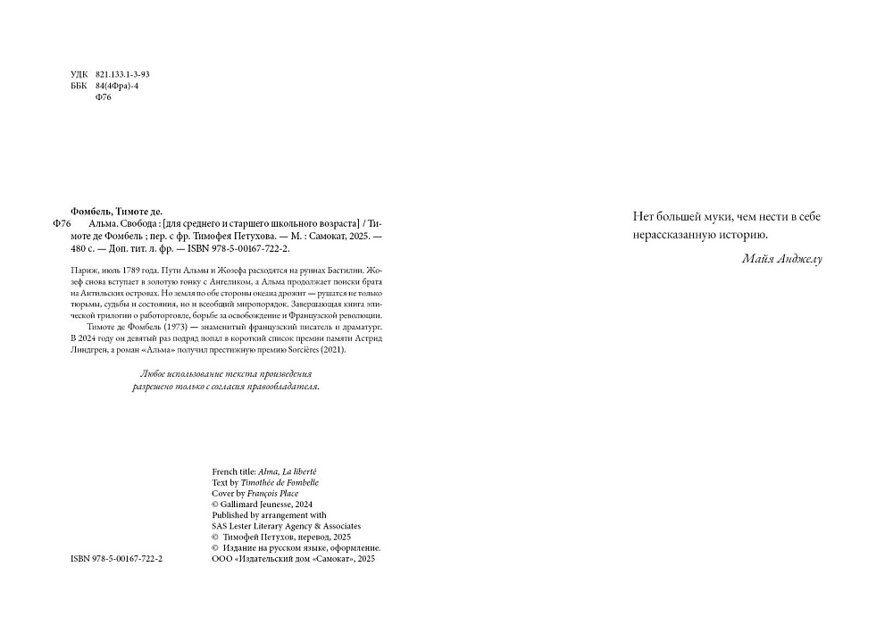 Париж, июль 1789 года. Пути Альмы и Жозефа расходятся на руинах Бастилии. Жозеф снова вступает в золотую гонку с Ангеликом, а Альма продолжает поиски брата на Антильских островах. Но земля по обе стороны океана дрожит – рушатся не только тюрьмы, судьбы и состояния, но и всеобщий миропорядок. Завершающая книга эпической трилогии о работорговле, борьбе за освобождение и Французской революции.