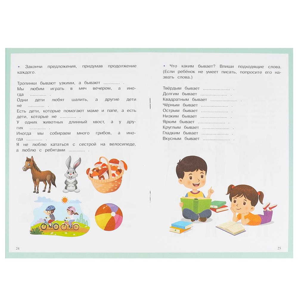 В этом издании собраны простые упражнения на развитие речевых навыков. Процесс обучения представлен в игровом виде, чтобы ребёнку было интересно заниматься. С помощью этой брошюры будущий школьник расширит свой словарный запас, строить предложения, научится употреблять предлоги, подбирать антонимы и синонимы к словам.