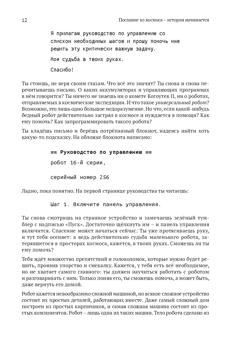 Это удивительное приключение понравится любознательным детям, которые любят сложные задачи. Оно пробудит в них интерес к информатике и языкам программирования и покажет, насколько безграничны возможности современных технологий.