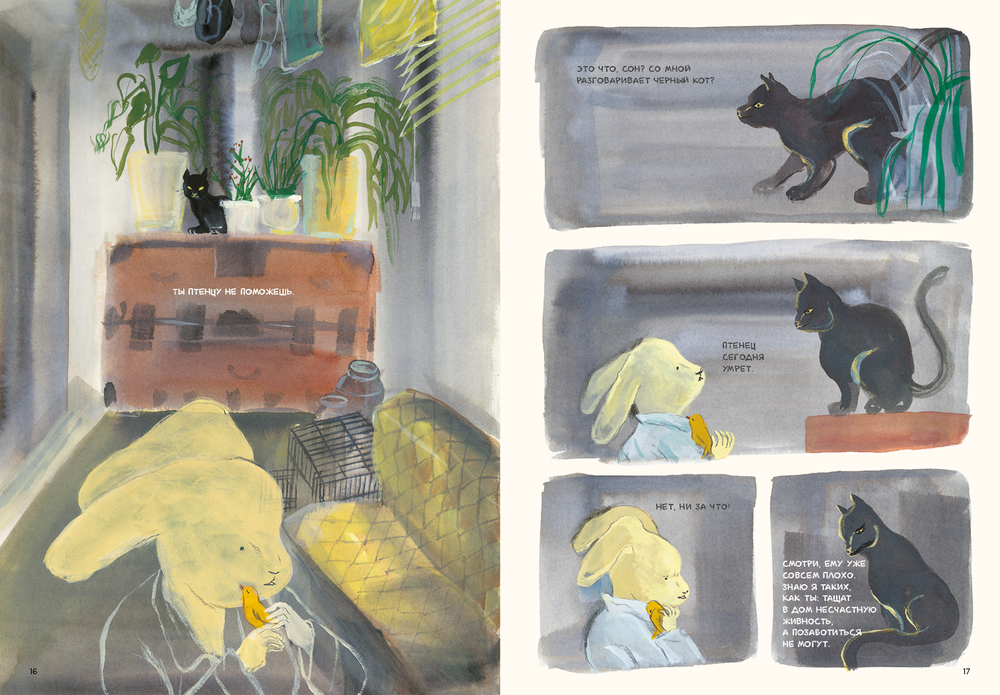 В этом графическом романе животные живут человеческую жизнь. У главной героини Зайки есть невидимый загадочный спутник – Черный леопард. Он постоянно находится рядом, напоминает о травмирующем опыте, отравляет жизнь под видом заботы.
