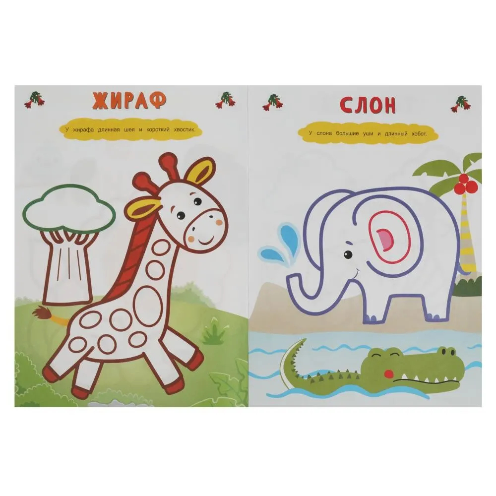 Пальчиковая раскраска – отличный способ для малыша познать окружающий мир посредством сенсорного восприятия. С помощью этой занимательной книжки ребенок пополнит свои знания о цветах и формах, а также познакомиться с разнообразными обитателями зоопарка. Такой формат занятий непременно заинтересует маленького любознайку, позволит ему быстрее и эффективнее усваивать новую информацию.