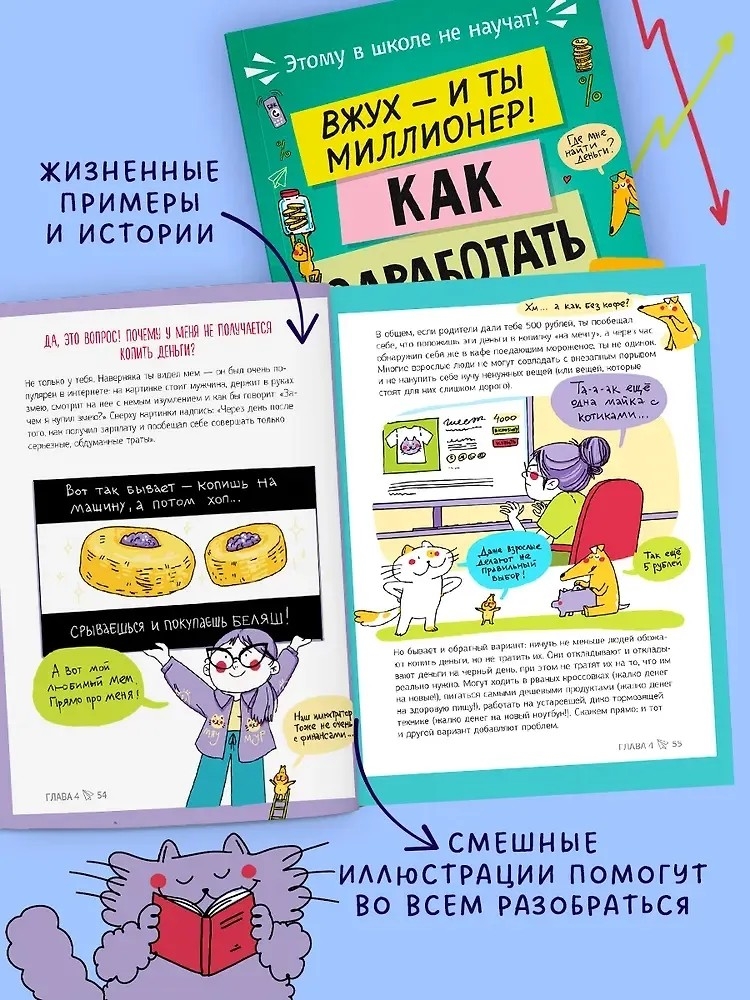 На страницах этой уникальной книги для подростков читатели найдут ответы на все важные вопросы о деньгах. Как накопить, как правильно тратить, как заработать, если ты школьник, что такое налоги, инфляция и как работают банки. Простым, понятным языком авторы – известный коуч Нина Зверева и талантливый журналист Светлана Иконникова – расскажут мальчику и девочке, что такое финансовая грамотность, как не оказаться жертвами мошенников и как стать успешным и богатым. Жизненные примеры и истории и веселые иллюстрации этой Clever книги помогут лучше понять написанное.