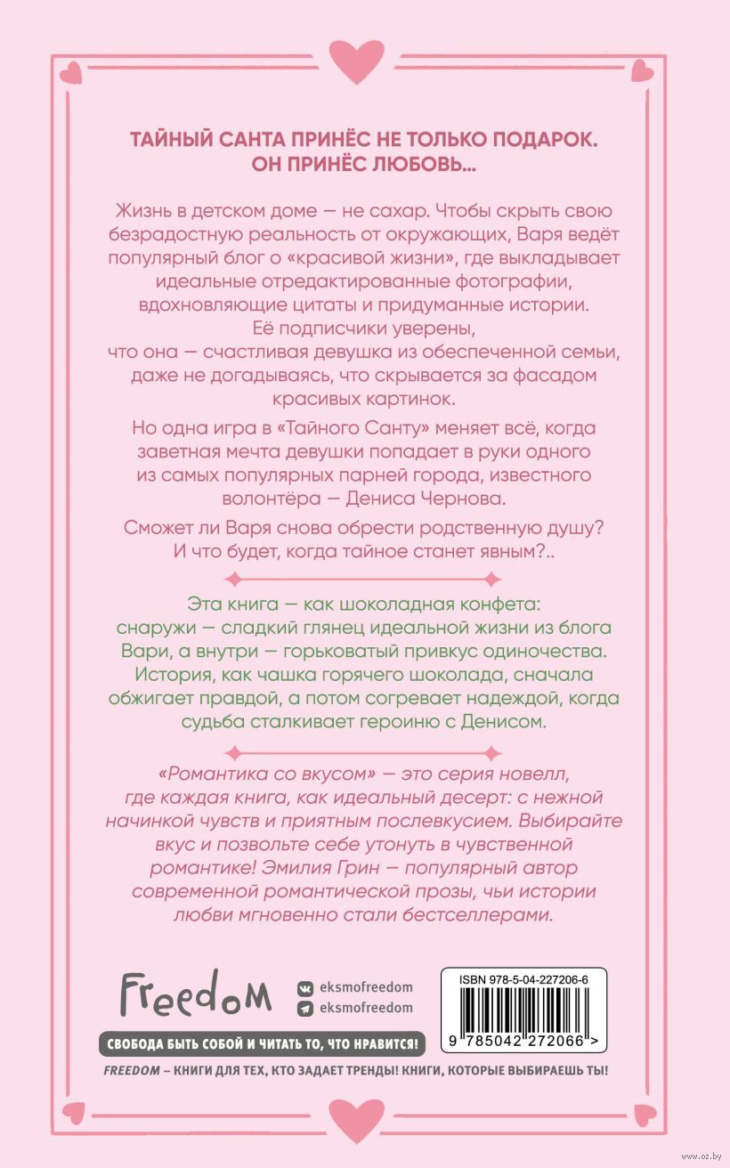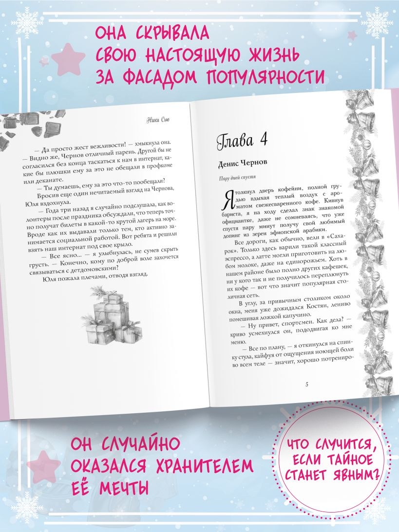 Но одна игра в "Тайного Санту" меняет все, когда заветная мечта девушки попадает в руки одного из самых популярных парней города, известного волонтера – Дениса Чернова.