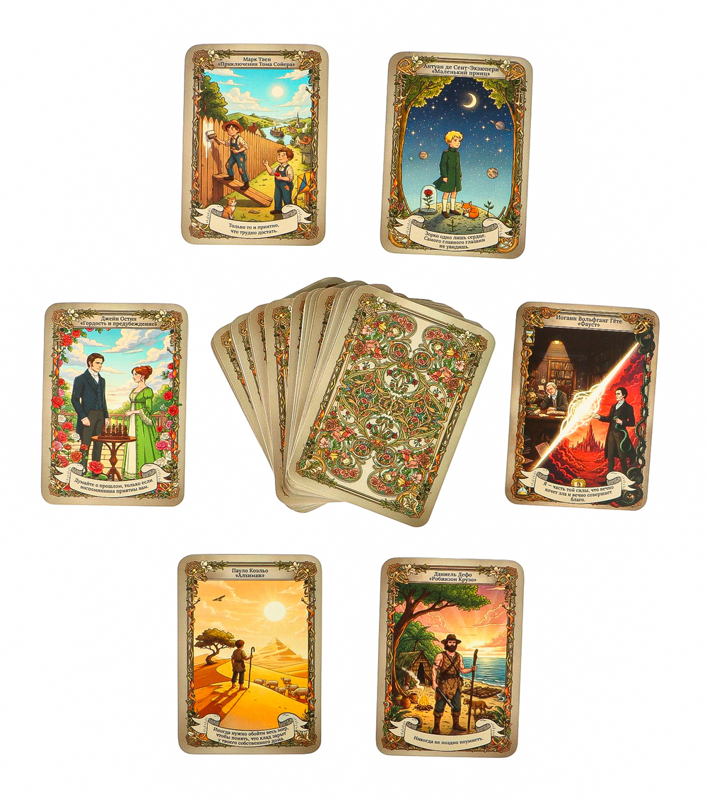 Это уникальный набор карточек, который поможет тебе открыть тайны будущего и получить ответы на важные вопросы, опираясь на страницы книг классической и современной литературы.