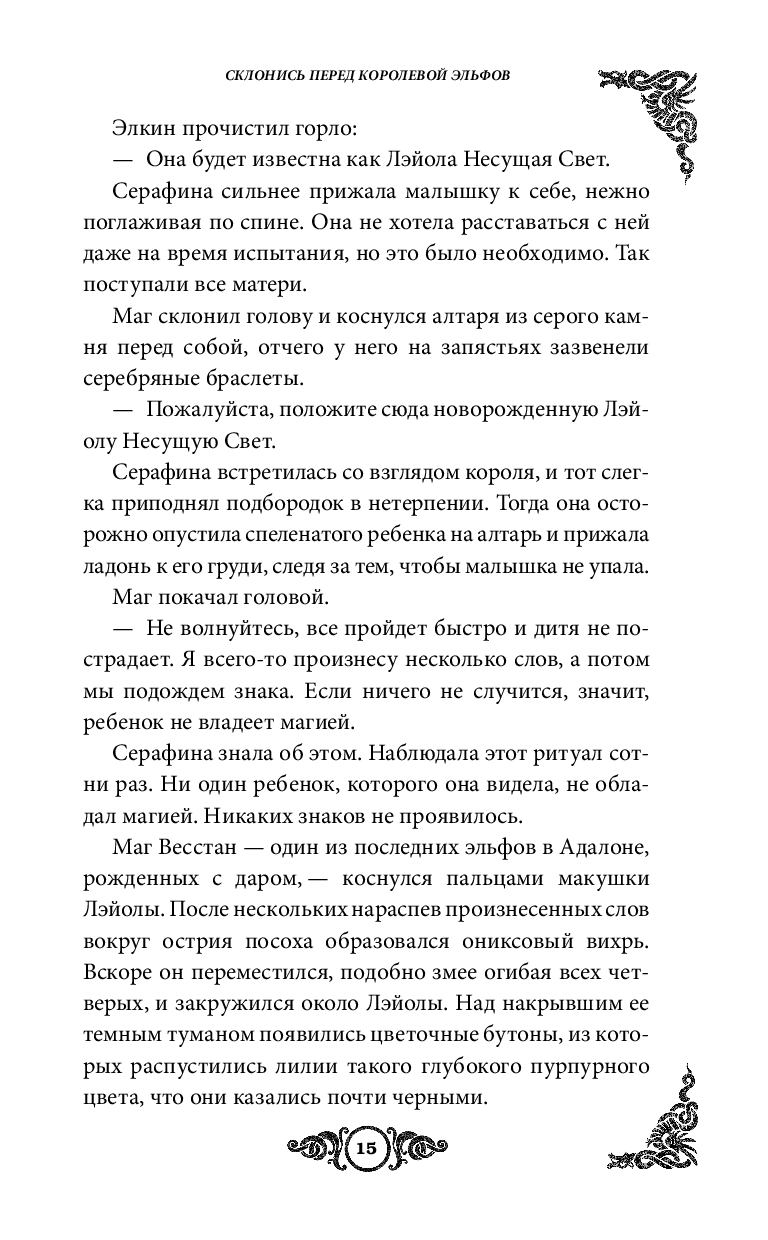 Однажды Лэйола встречается лицом к лицу с тем, от кого так долго пряталась, – опасным темноволосым королем-воителем. Эльфийку похищают в черной карете, запряженной шестеркой лошадей, и она клянется, что лишит жизни мучителей и вернет себе свободу… Однако у Тэйна есть секрет, из-за которого Лэйола не может его убить. В самой же девушке сокрыта еще более мрачная тайна: ее любовь сулит смерть…