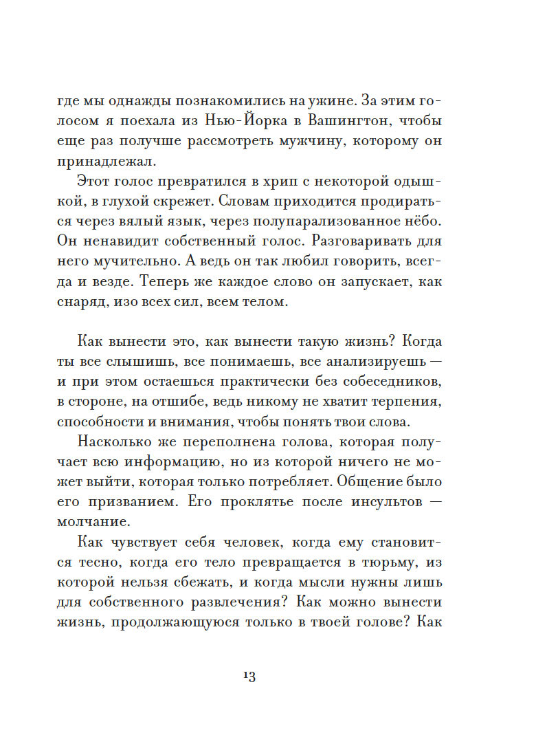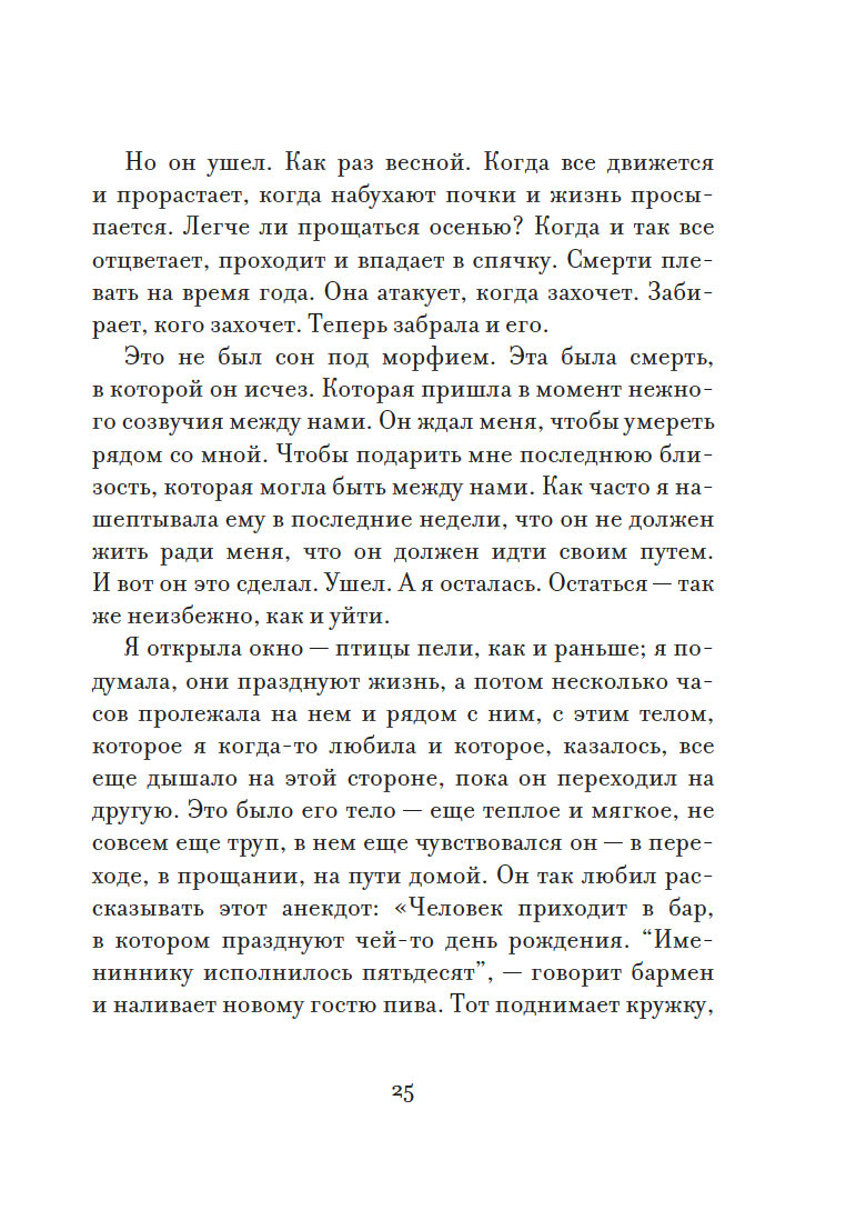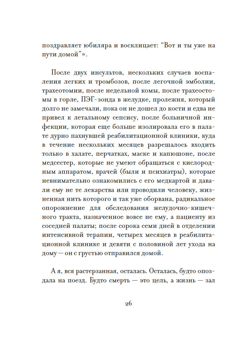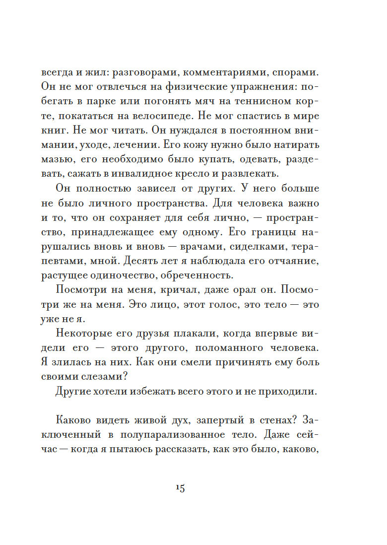 Этот сборник эссе – не просто история болезни и ухода. Это честный, лишенный пафоса дневник любви, которая расцвела заново в самое трудное время. Габриэль фон Арним пишет не о жертвенности – она рассказывает о буднях, где совместное приготовление завтрака становится ритуалом, а приход друзей – счастливым событием.