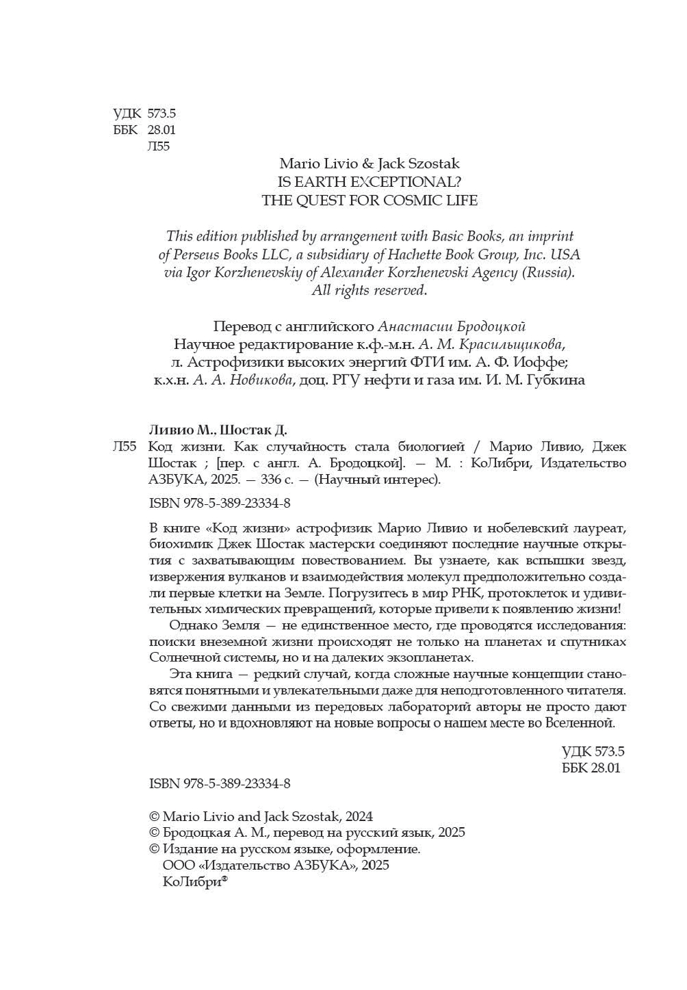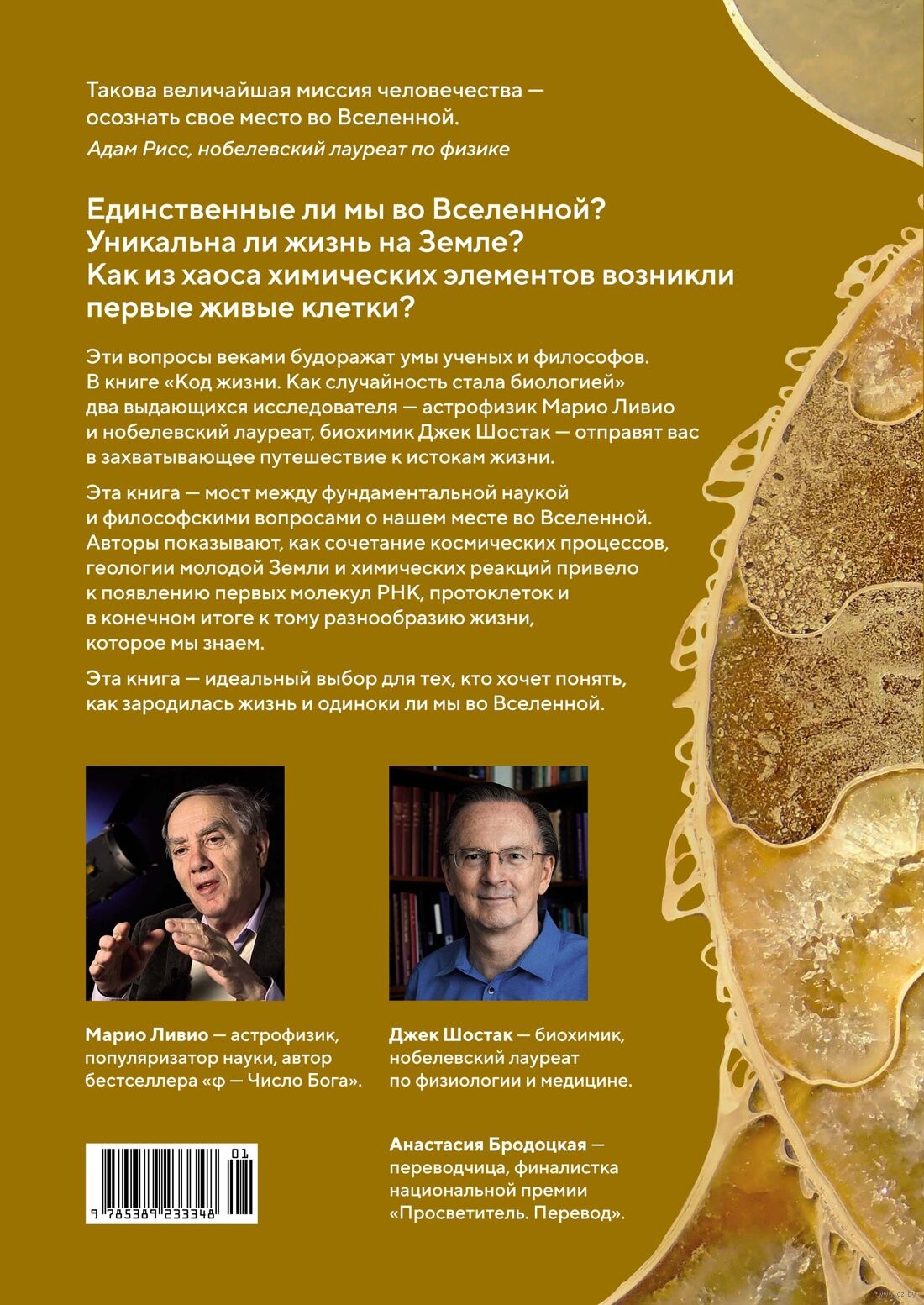 В книге "Код жизни" астрофизик Марио Ливио и нобелевский лауреат-биохимик Джек Шостак мастерски соединяют последние научные открытия с захватывающим повествованием. Вы узнаете, как вспышки звезд, извержения вулканов и взаимодействия молекул предположительно создали первые клетки на Земле. Погрузитесь в мир РНК, протоклеток и удивительных химических превращений, которые привели к появлению жизни.