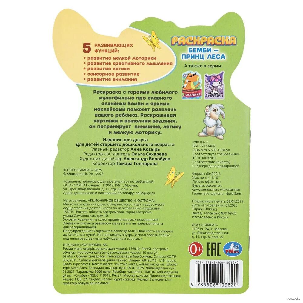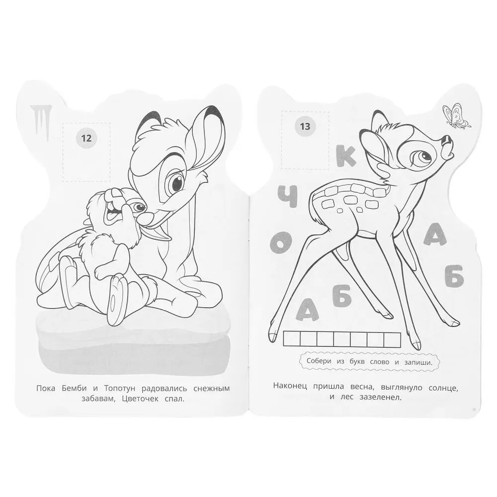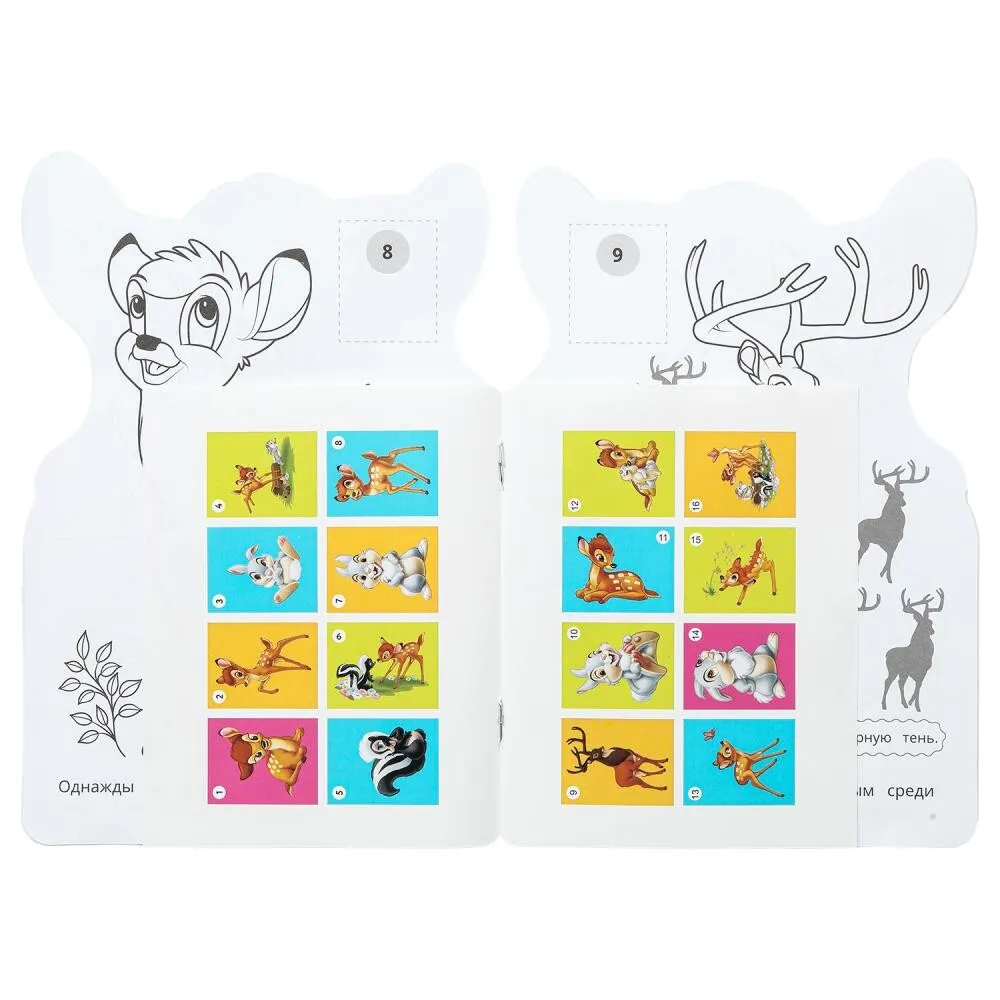 Ребенок будет рад повстречаться на страницах этой занимательной раскраски с милым олененком Бемби и его друзьями. В данном издании детей ждут красивые картинки с четкими контурами, интересные задания к ним и яркие стикеры, которые можно использовать в качестве образца для раскрашивания. Благодаря компактному размеру раскраску удобно брать с собой в дорогу.