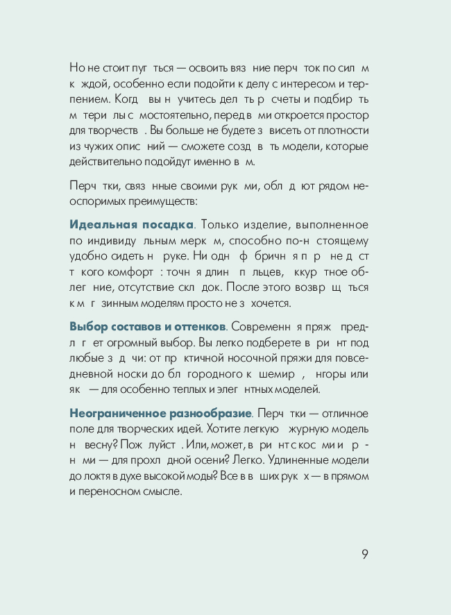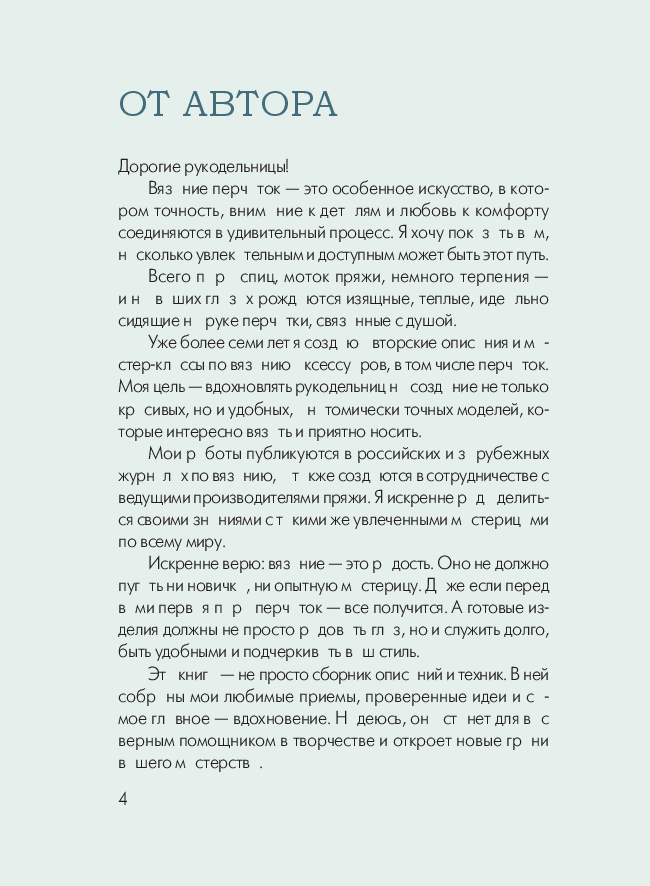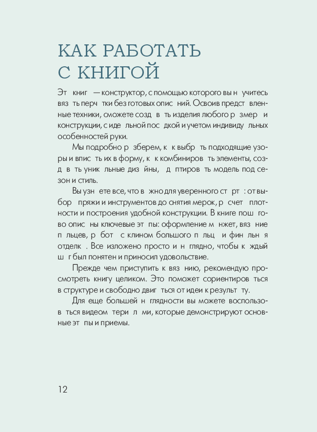 Идеальное практическое руководство небольшого формата, специально созданное для того, чтобы носить с собой в вязальной сумке, которое шаг за шагом научит создавать красивые, теплые и идеально сидящие перчатки на любой размер. В книге подробно разобраны все этапы работы: от выбора пряжи и инструментов до индивидуальных расчетов, проработки каждого пальца и оформления манжет. Автор делится секретами, позволяющими адаптировать базовую конструкцию под варежки, митенки, гловелетты и таби. Благодаря четким объяснениям и системному подходу вы сможете легко связать перчатки без готовых описаний, используя любую пряжу и создавая аксессуары в своем уникальном стиле, быстро найти подсказку или ответ на любой вопрос и просто получить удовольствие от процесса и от результата.