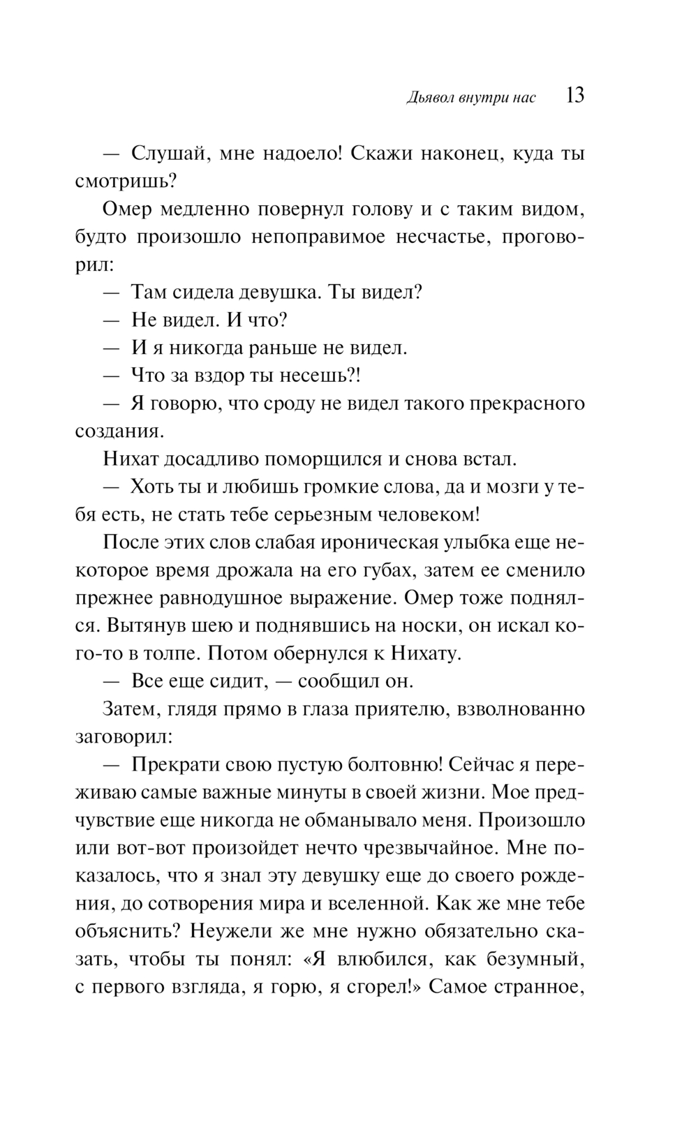 Легендарный турецкий писатель Сабахаттин Али стал запоздалым триумфальным открытием для европейской литературы. В своем творчестве он раскрывал проблемы взаимоотношений культур и этносов на примере обыкновенных людей, и этим быстро завоевал расположение литературной богемы. В романе "Дьявол внутри нас" Сабахаттин Али вновь исследует человеческую душу и крупными мазками изображает Стамбул начала ХХ-го века.