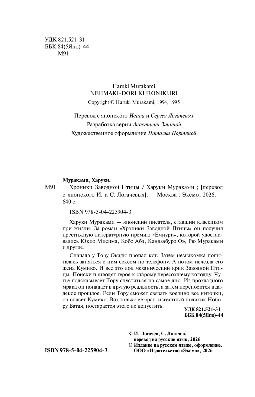 | Название в оригинале | The Wind Up Bird Chronicle |
