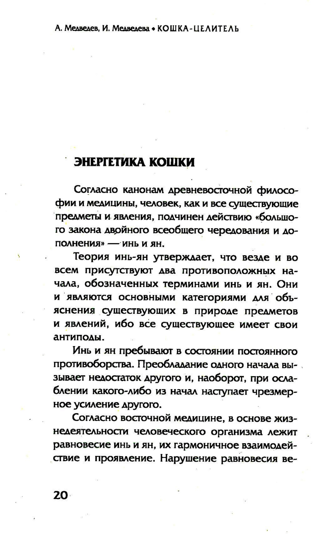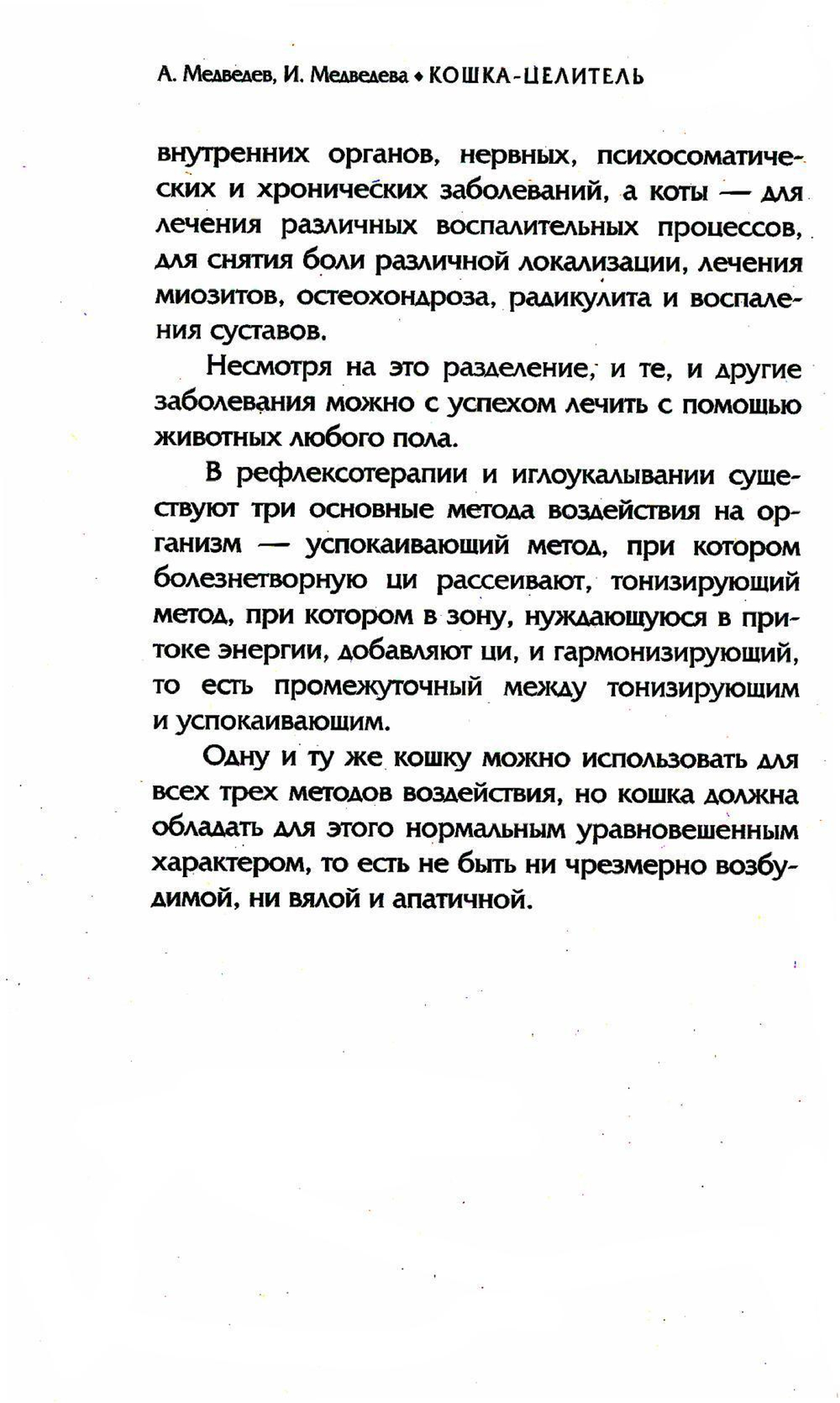 В книге известных российских писателей и психологов Александра и Ирины Медведевых «Животные – домашние целители. Методы и техники лечения болезней» подробно рассказано о том, как человек может использовать кошек и собак для того, чтобы избавиться от многих болезней, а также обрести хорошее настроение и самочувствие. Издание предназначено для всех, кто интересуется нетрадиционной медициной.